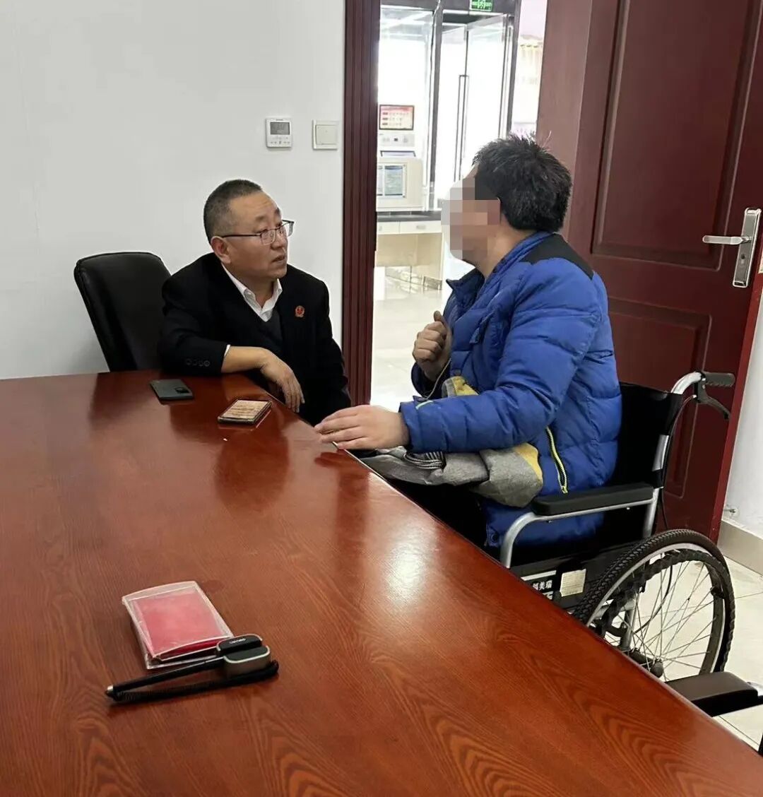当事人郭某乘坐轮椅独自前来办理立案业务,因不熟悉立案流程、不清楚所需材料,加之身体行动不便,郭某感到手足无措,焦急与无助写在脸上。这一幕被立案庭的工作人员看在眼里,工作人员先将郭某引导至无障碍便民服务区域,耐心安抚其情绪并询问其办事需求:“您别着急,慢慢说,我们全程帮您办好。”经沟通,原来郭某此前购买了一辆电动三轮车用于日常出行,因车辆出现故障不慎摔倒,致使郭某身体多处受伤,在与商家协商赔偿事宜未果后,郭某来到法院,希望通过法律途径维护自身合法权益。