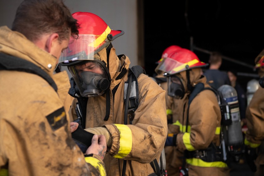 参与“好人理查德”号救火的消防人员。
