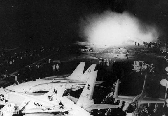 然而,这还不是美军最惨烈的事故。1981年,“尼米兹”号航母发生一起罕见的飞机撞击爆炸引发大火事件,造成14名舰员死亡,近50人受伤。