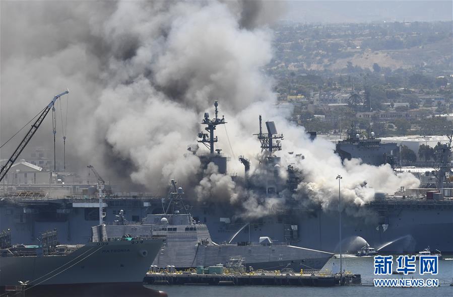 发生火灾的“好人理查德”号两栖攻击舰。新华社