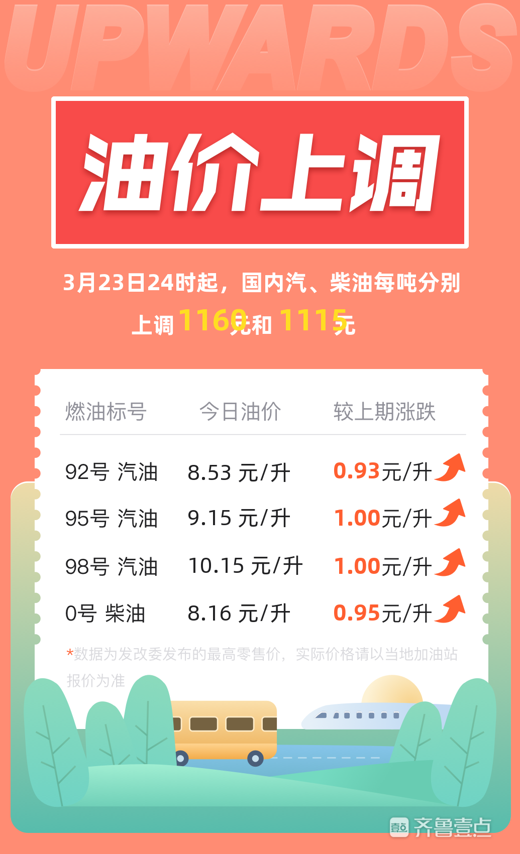 3月23日24时,国内成品油价格迎来大幅上调,汽油每吨上涨1160元,柴油每吨上涨1115元,折合升价涨幅达0.93元至1元。此次调整为今年以来最大单次涨幅,也是本月第二次上调,相较去年同期,汽柴油价格每升贵了1.27元至1.64元。