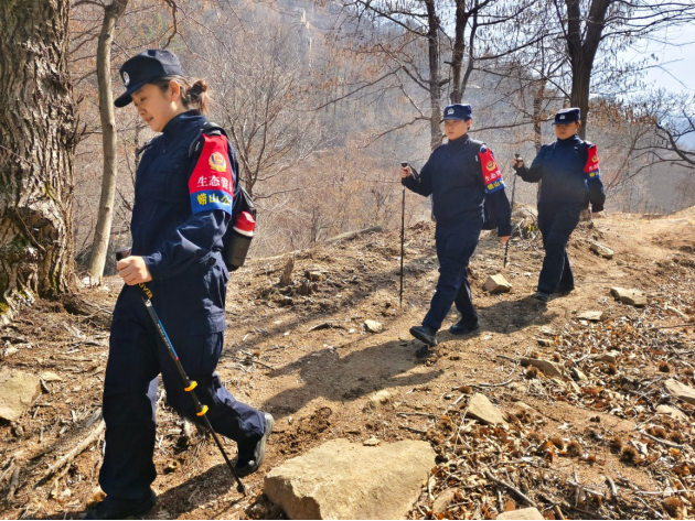 3月20日,青岛崂山公安分局环食药侦大队女子生态警务队深入林区,组织开展高山远山专项巡查行动,以实地巡护筑牢生态安全屏障。