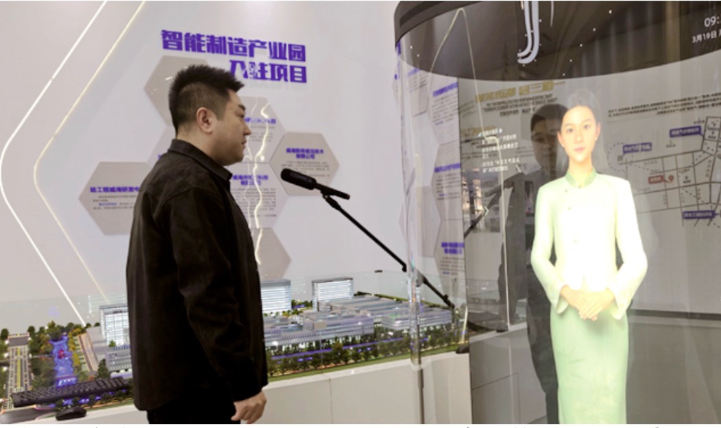踏入威海智慧谷服务贸易产业园展厅,数字人“小智”笑意盈盈、声音悦耳,正流畅地为来访者讲园区面貌,成为展厅里一道特别的风景线。