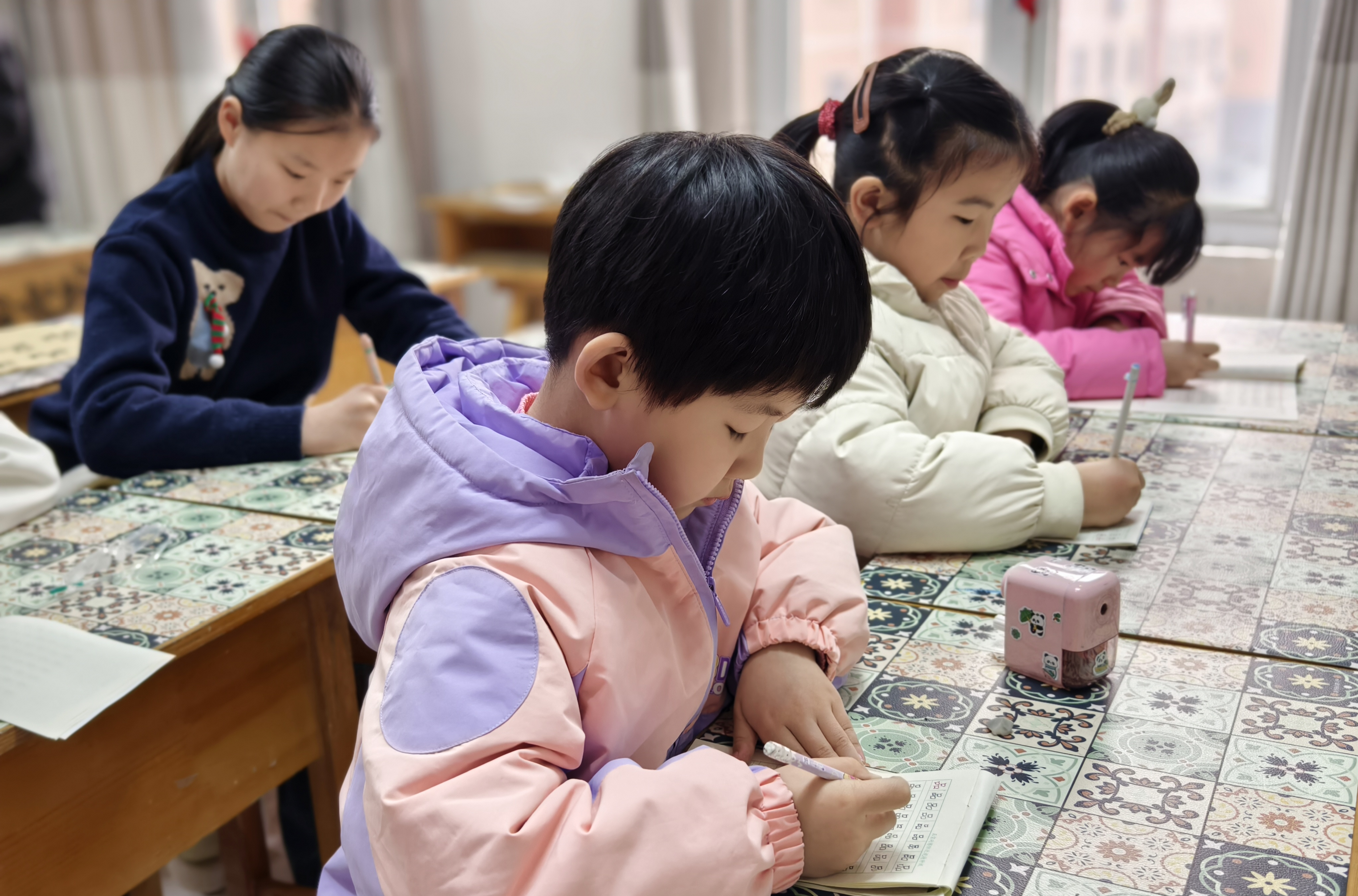活动现场,社区工作人员有序引导孩子们就座,爱心商家选派的专业书法老师耐心授课。从握笔姿势、笔画笔顺到间架结构、章法布局,老师逐一细致讲解、示范纠正,手把手带领大家练习基本笔画与常用汉字。孩子们凝神静气、认真临摹,在一笔一画中感受汉字之美,在交流互动中增进邻里情谊。