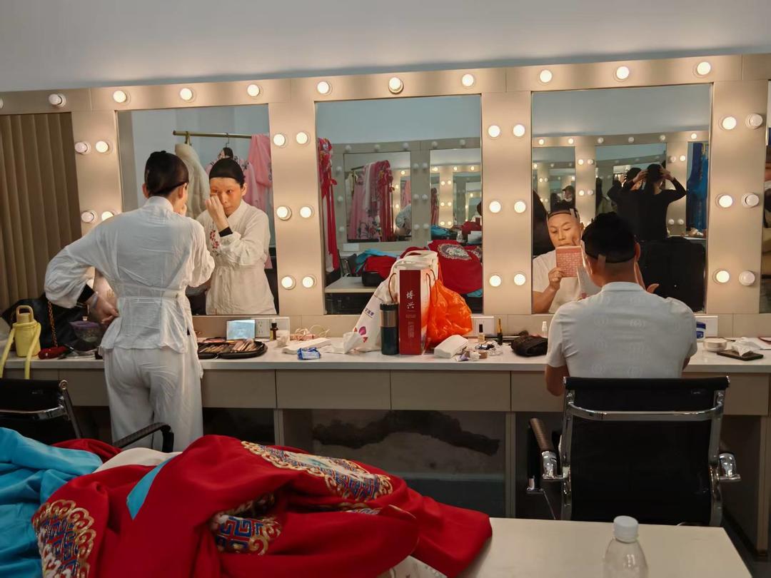 展演期间,演员在后台化妆