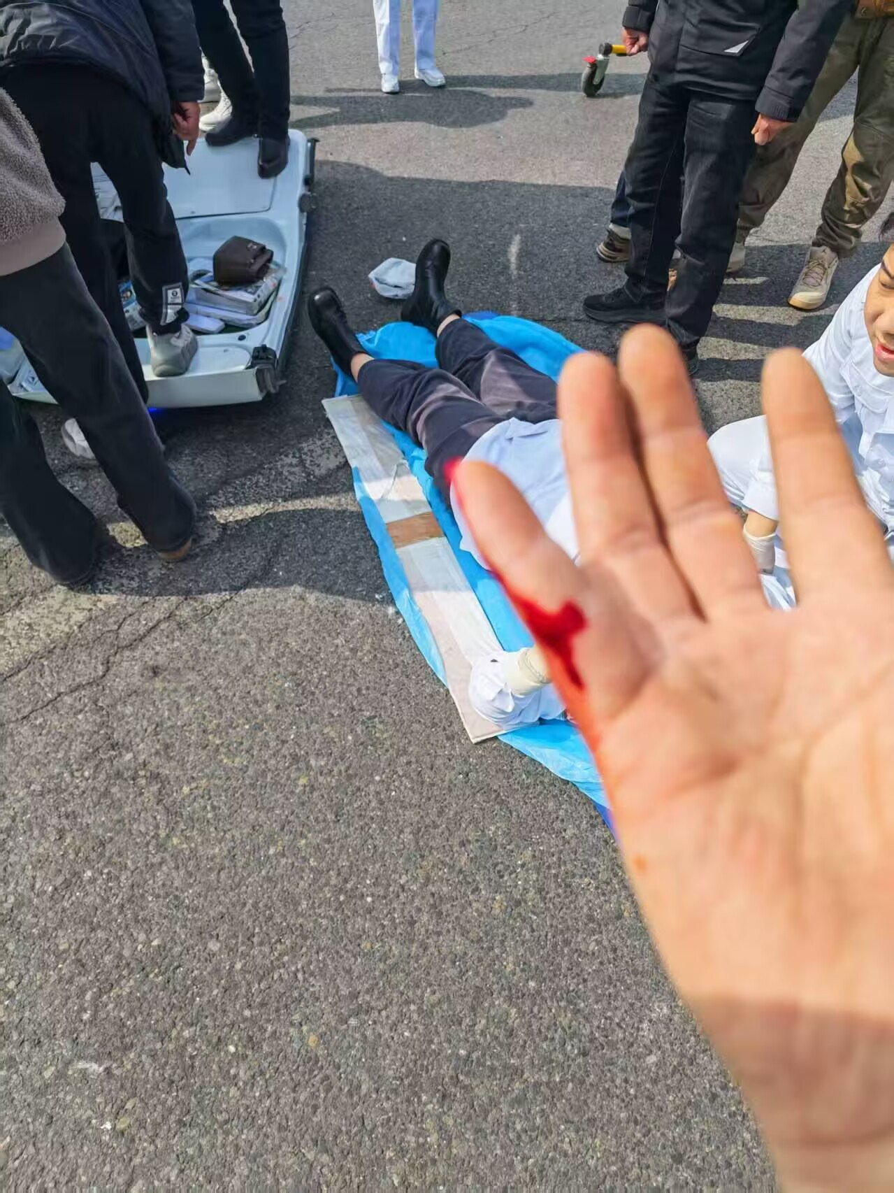 烟台街头生死时速:救护车被撞侧翻,过路司机踹窗救出5人后悄然离开