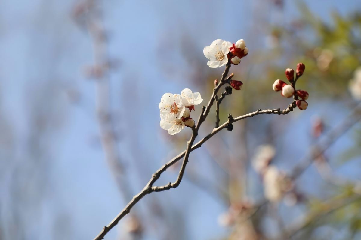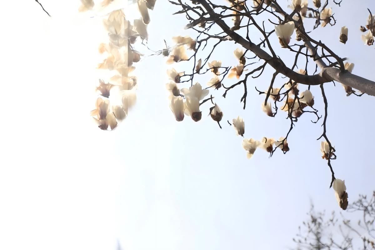 往来的身影穿梭其间,偶尔驻足凝望枝头小花,眉眼间尽是温柔。