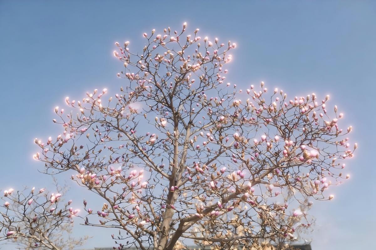 庭院角落,嫩黄的花盏轻轻摇曳;小径边,玉兰的花苞缀满枝头,沾着晨露,似藏着满心欢喜;石阶缝隙里,不知名的小紫花、小黄花探出头来,细碎却明亮,为钢城的春日画卷添上灵动笔触。