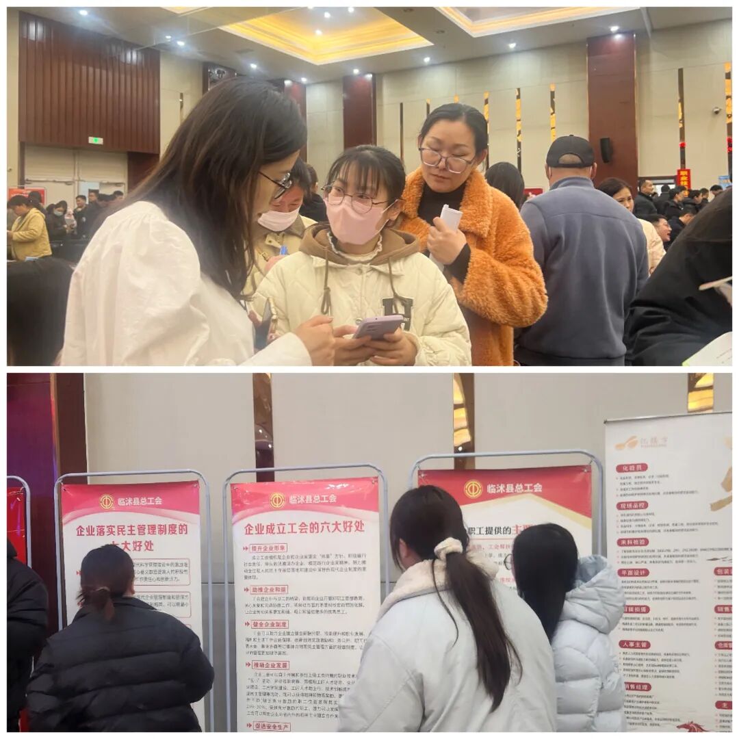 2月27日,临沭县总工会将建会入会和依靠职工办企业集中宣传月活动搬到了2026年春风行动大型招聘会现场,以“宣传+服务+入会”一站式服务,在开年之际把工会政策、暖心服务送到企业与职工身边。