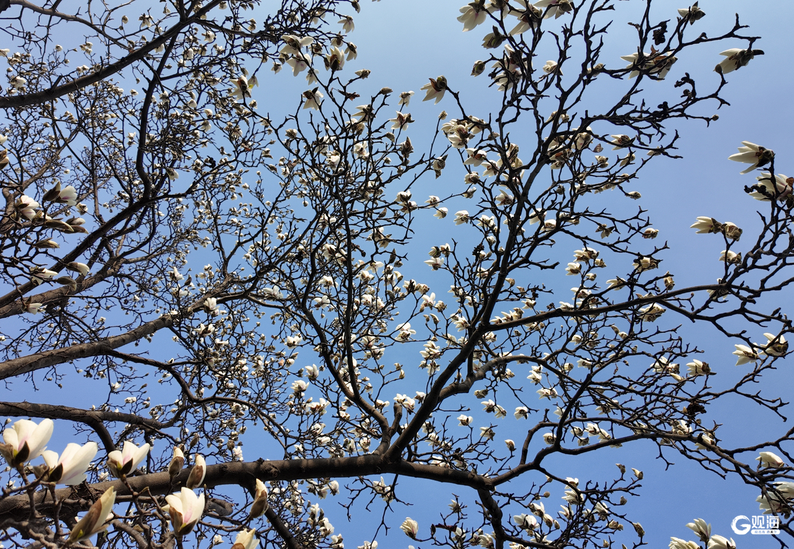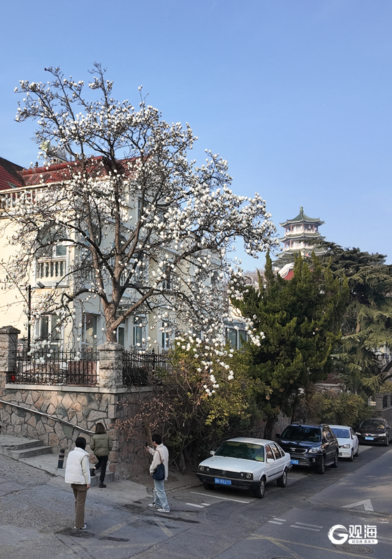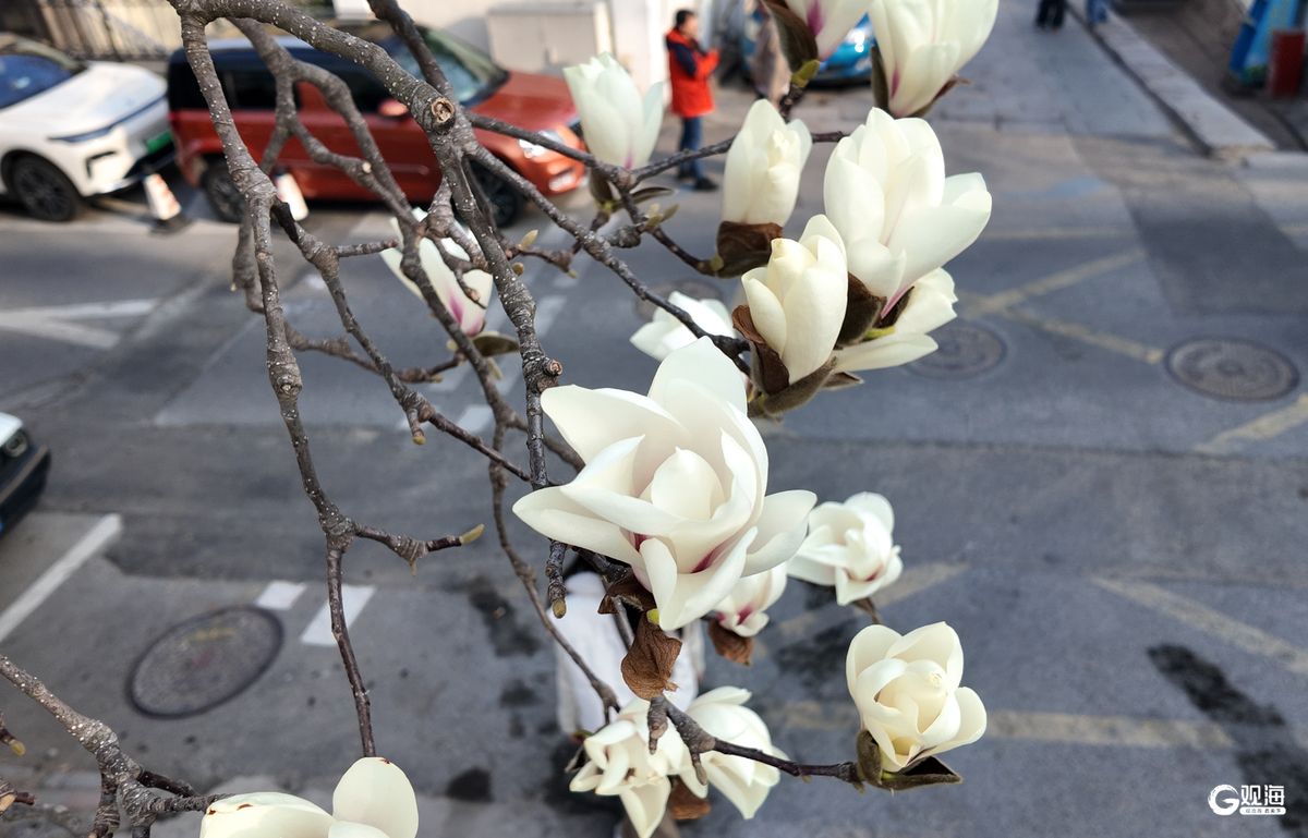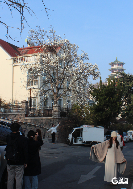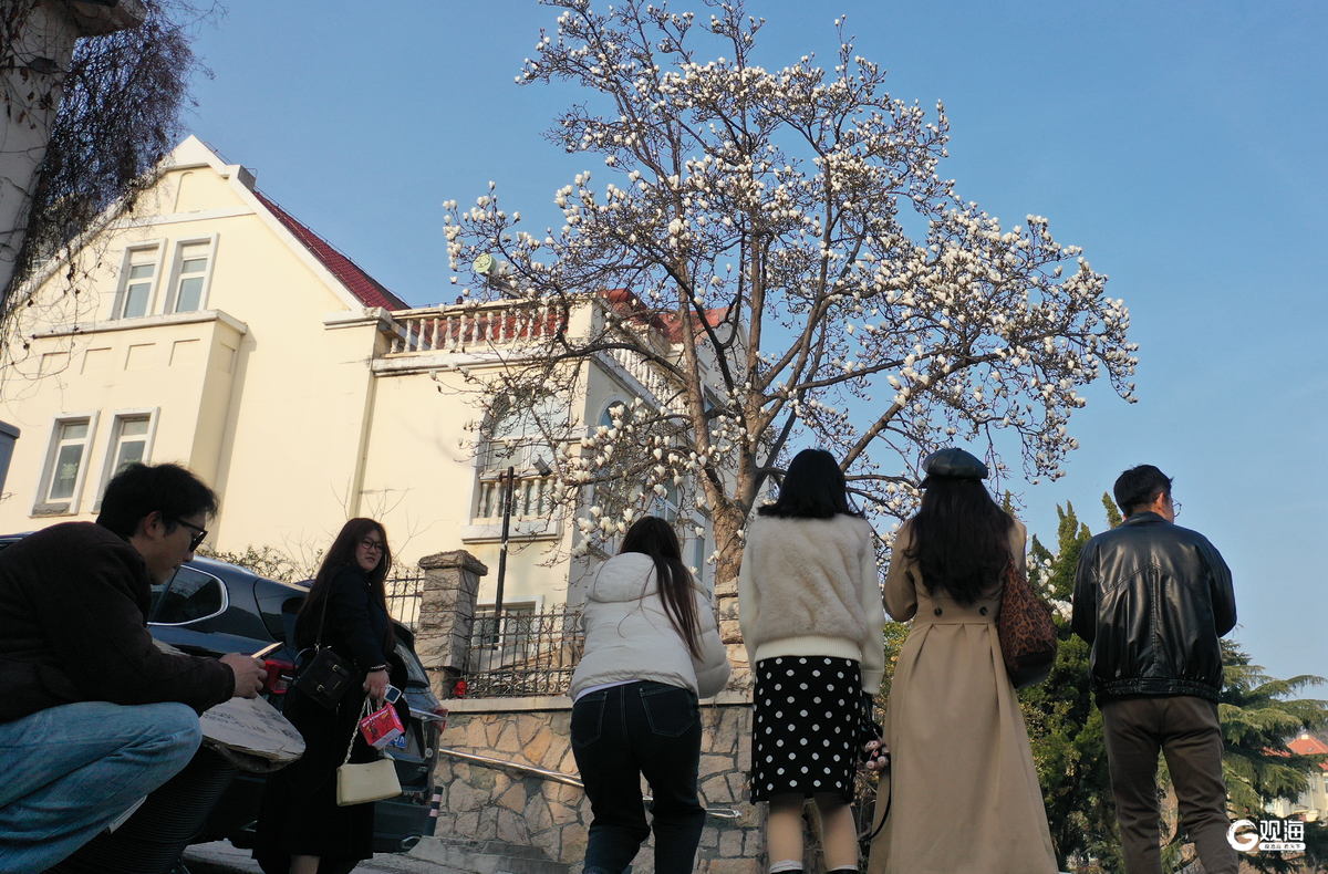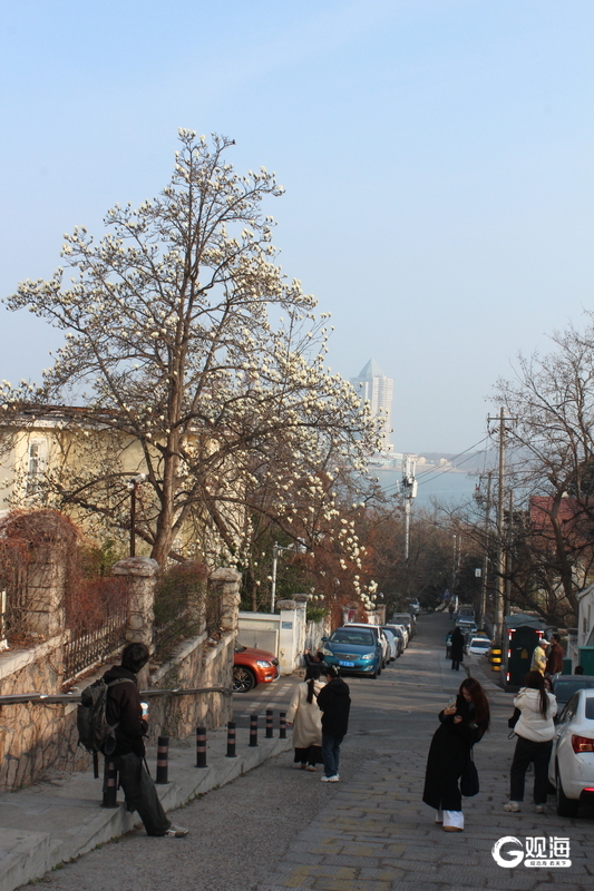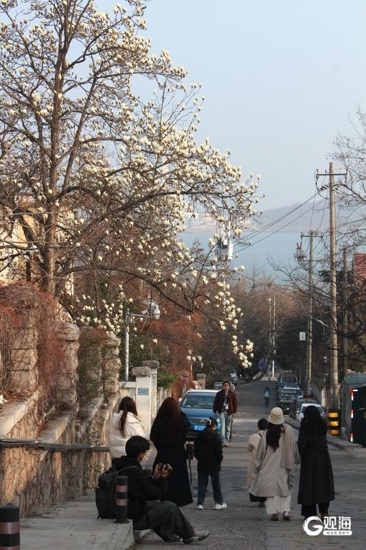 眼下,市南区金口一路的“网红”玉兰迎来一年中最美的时刻。立于花下抬首,洁白花瓣映衬蓝天,如云似雪;极目远眺,碧海万顷与小鱼山的青翠山影尽收眼底,一幅山海花相映的春日画卷徐徐展开。玉兰花期短暂,这份限定美景正迎来最佳观赏期,吸引众多市民游客慕名打卡,定格浪漫瞬间。