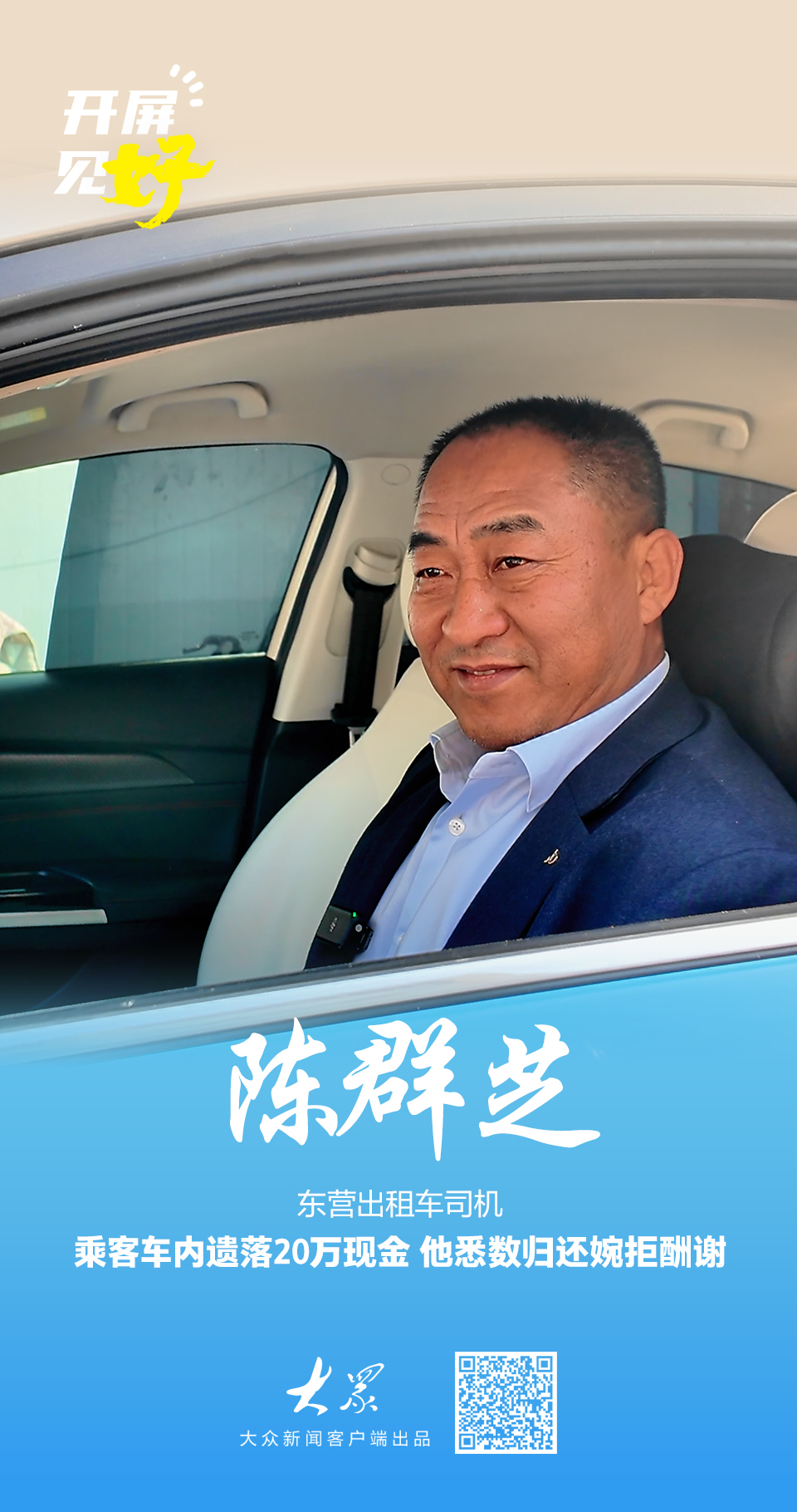 开屏见“好”|车内遗落20万现金,东营的哥苦等半小时物归原主婉拒酬谢