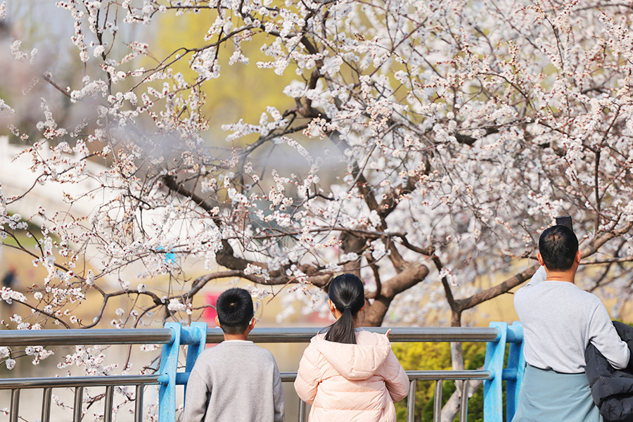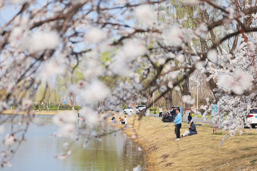 春风送暖,3月22日,聊城小湄河畔的杏花绽放,空气中弥漫着淡淡花香,为河岸增添了一抹动人春色,不少市民前来踏青游玩。 文/图记者许金松