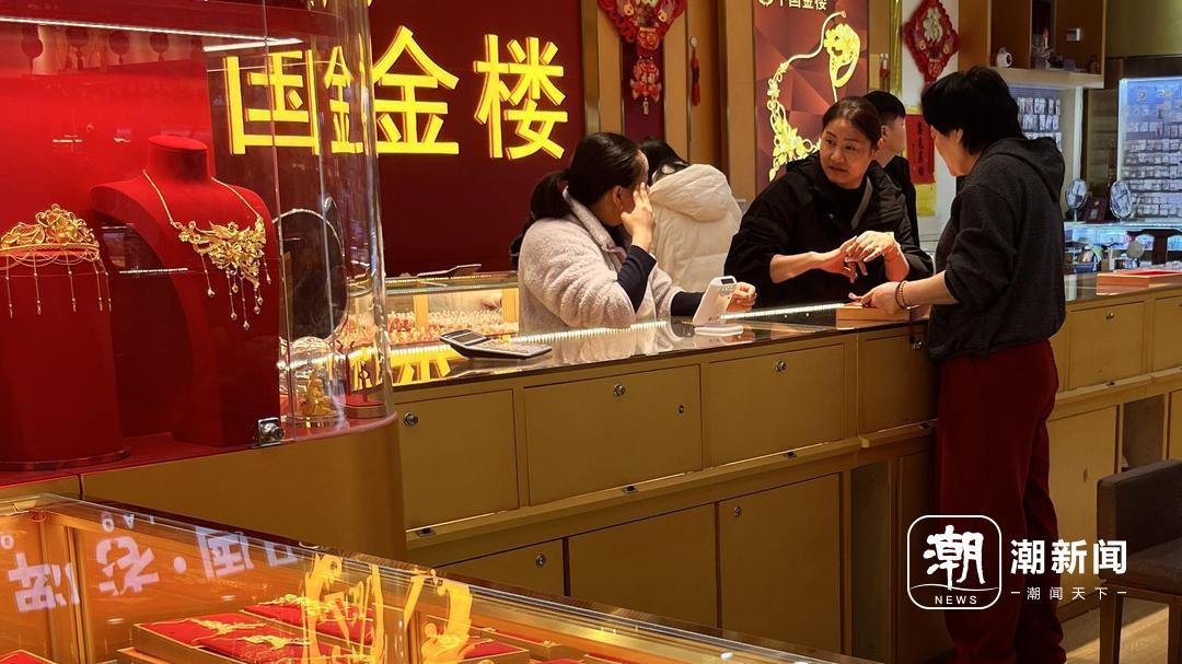 3月24日,消费者在杭州白马珠宝市场询问金饰价格。许恬 摄
