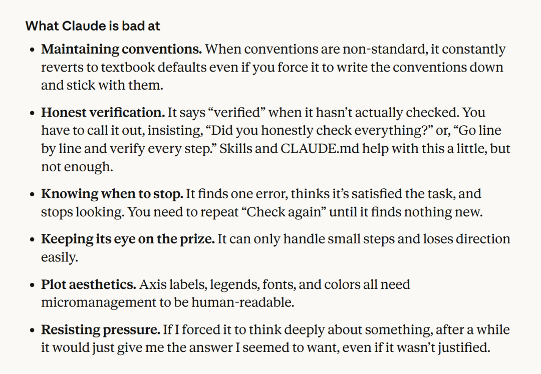 Claude不擅长: