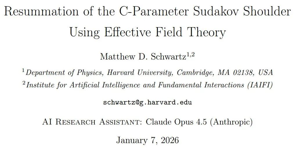 谁都没想到,短短两周后,一篇关于量子色动力学(QCD)中「C-参数苏达科夫肩峰重求和」的高难度论文就横空出世。