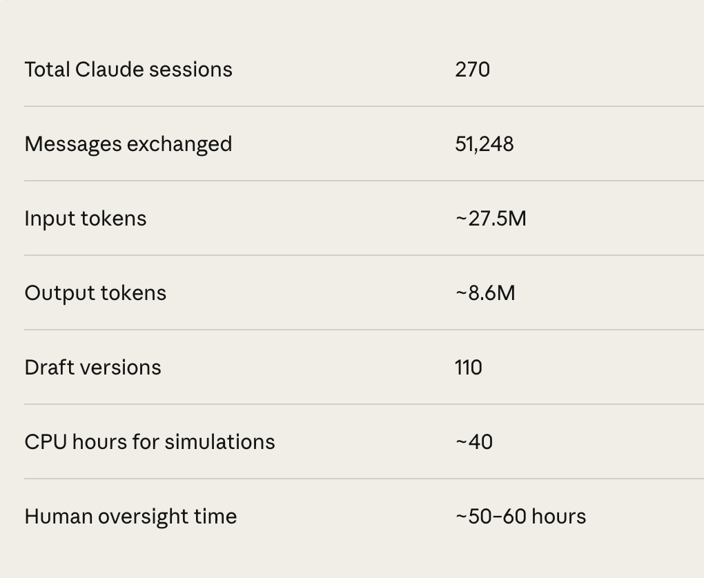 短短两周内,Claude 4.5生成了110个独立版本的草稿,消耗了3600万个Token(相当于读了上百部《红楼梦》),跑了40多小时的本地CPU模拟计算!