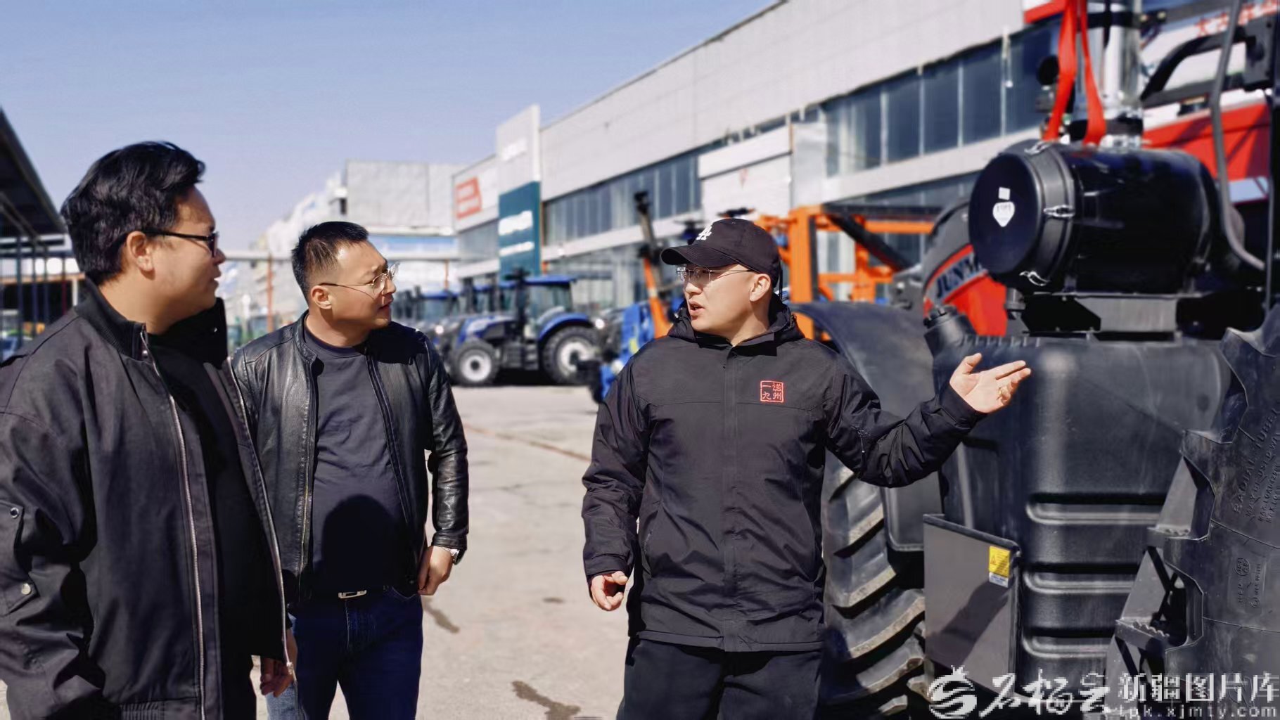 3月16日,昌吉市中亚农机物流港,经销人员向客户介绍农机。王薇 摄