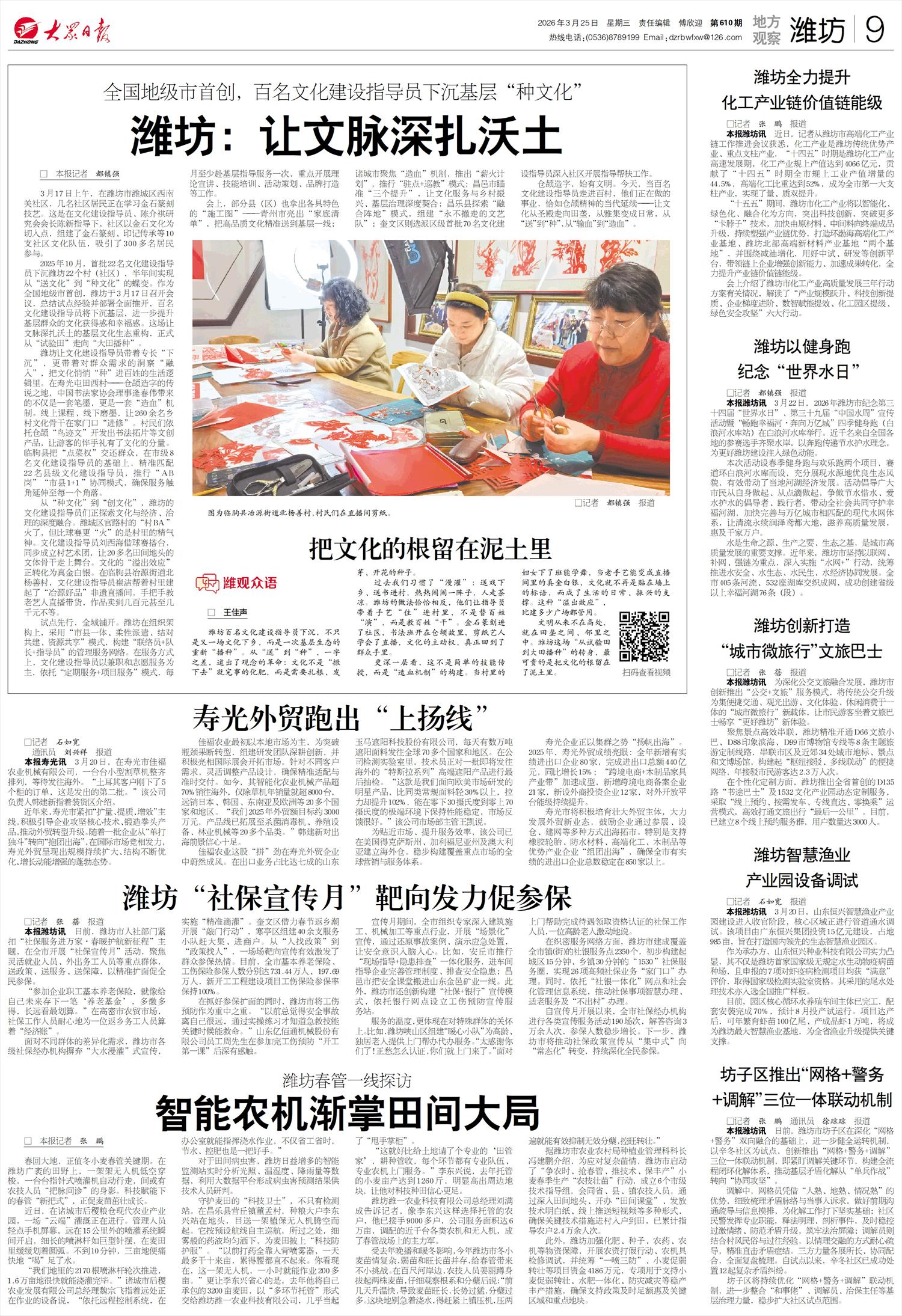 文明从来不在高处,就在田垄之间、邻里之中。潍坊这场“从试验田到大田播种”的转身,最可贵的是把文化的根留在了泥土里。