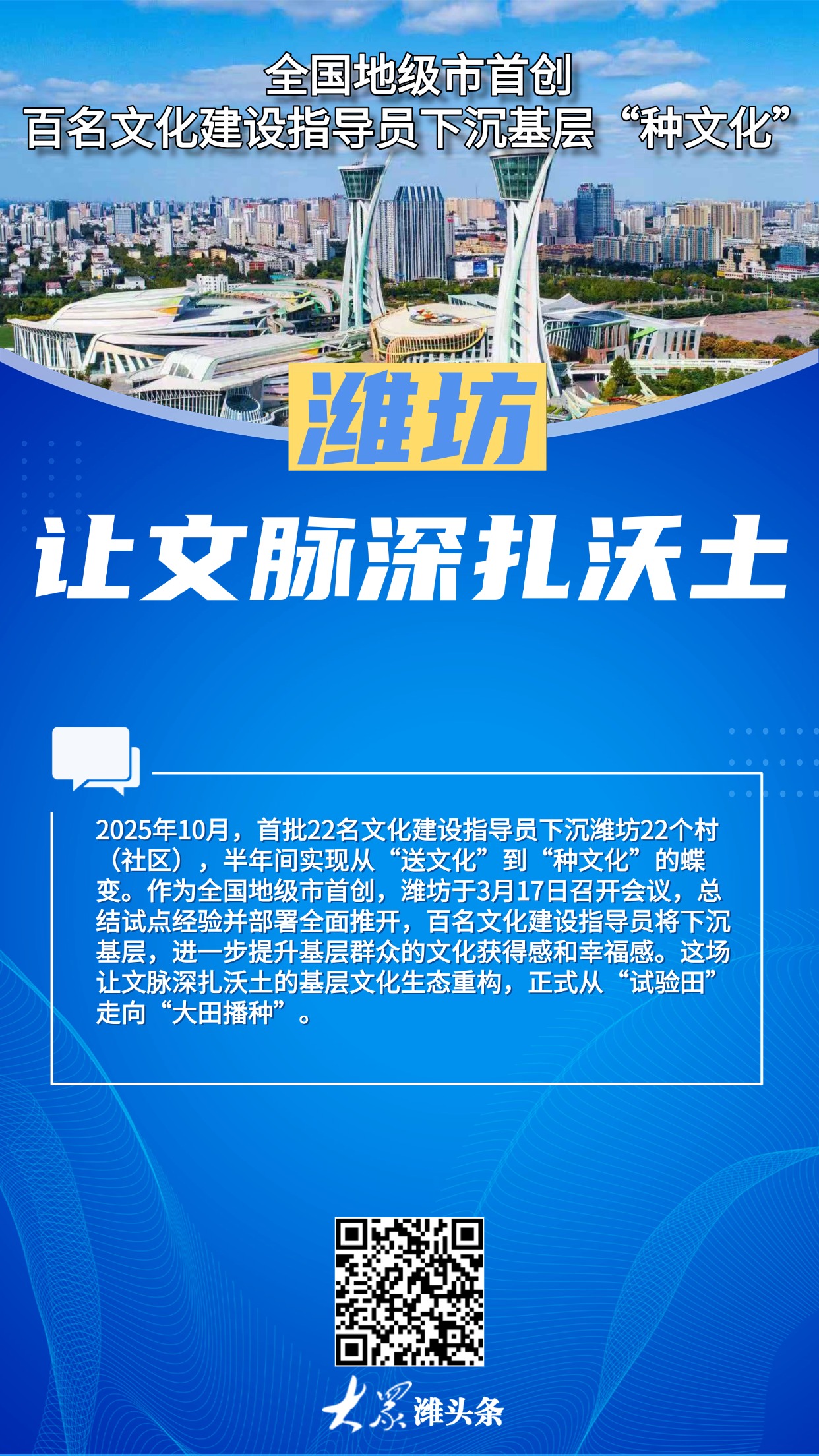 全国地级市首创,百名文化建设指导员下沉基层“种文化”!潍坊让文脉深扎沃土