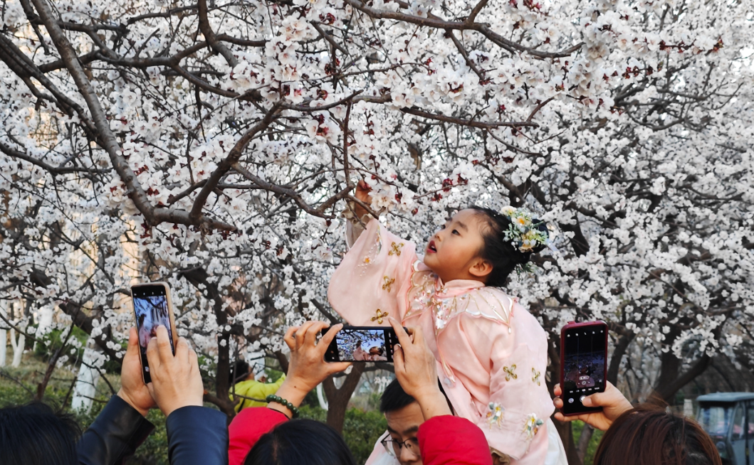 赏花时间:3月。东风起,杏花抢先染透枝头,粉白的花瓣轻盈飘落,像漫天飞舞的花笺,漫步花海间,连风都带着清甜的气息。