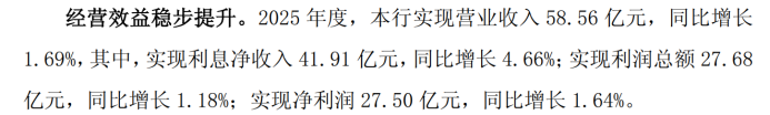 近日,厦门银行交出了一份营收、净利双增长的答卷。根据业绩快报,2025年,厦门银行实现营业收入58.56亿元,同比增长1.69%;实现归母净利润26.34亿元,同比增长1.52%。截至2025年末,该行总资产4530.99亿元,较上年末增长11.11%,其中,贷款及垫款总额2432.47亿元,较上年末上升18.39%,占总资产比例较上年末提升3.31个百分点。