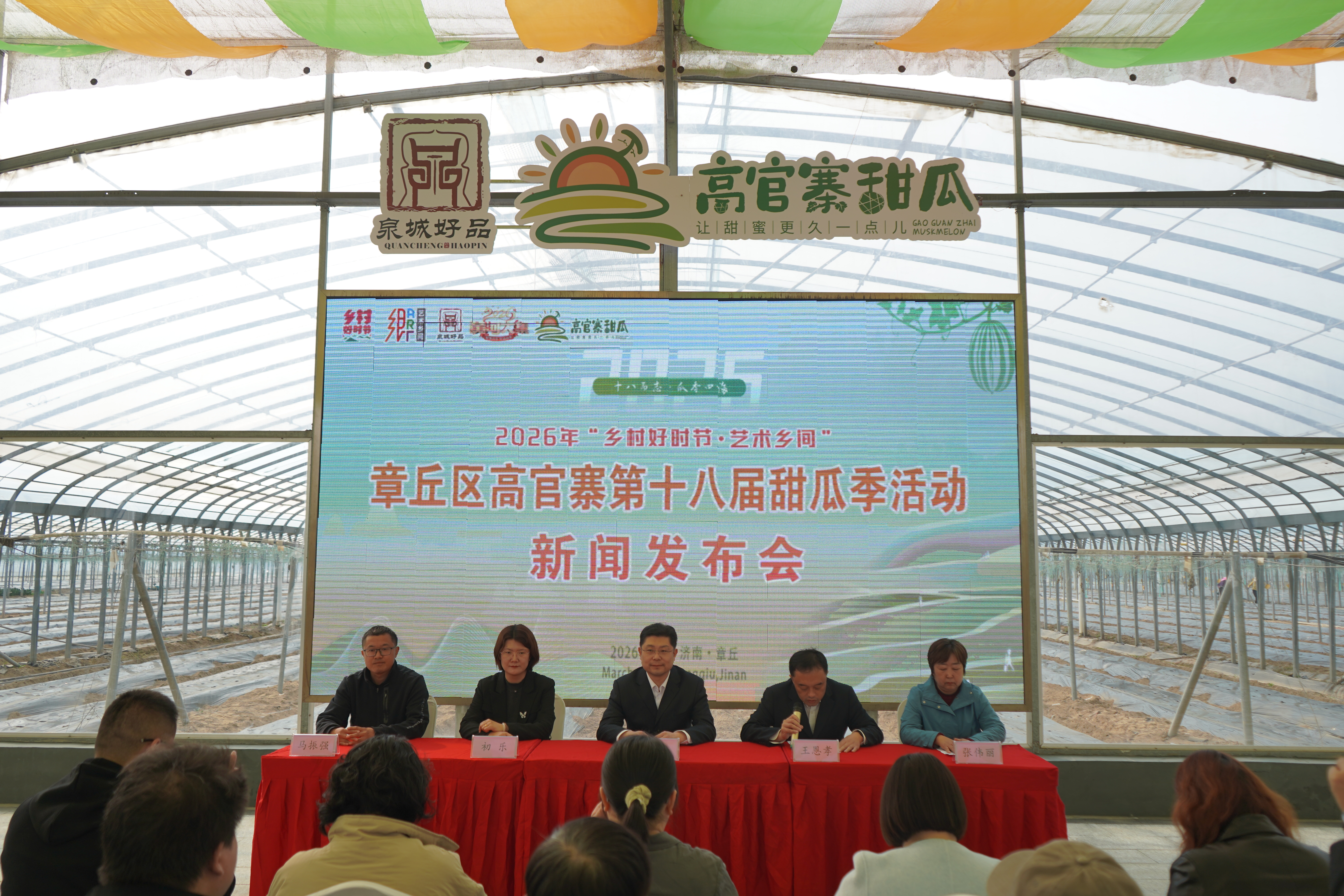 3月24日,济南市章丘区2026年“乡村好时节·艺术乡间”主题年活动暨章丘区高官寨第十八届甜瓜季新闻发布会举行。