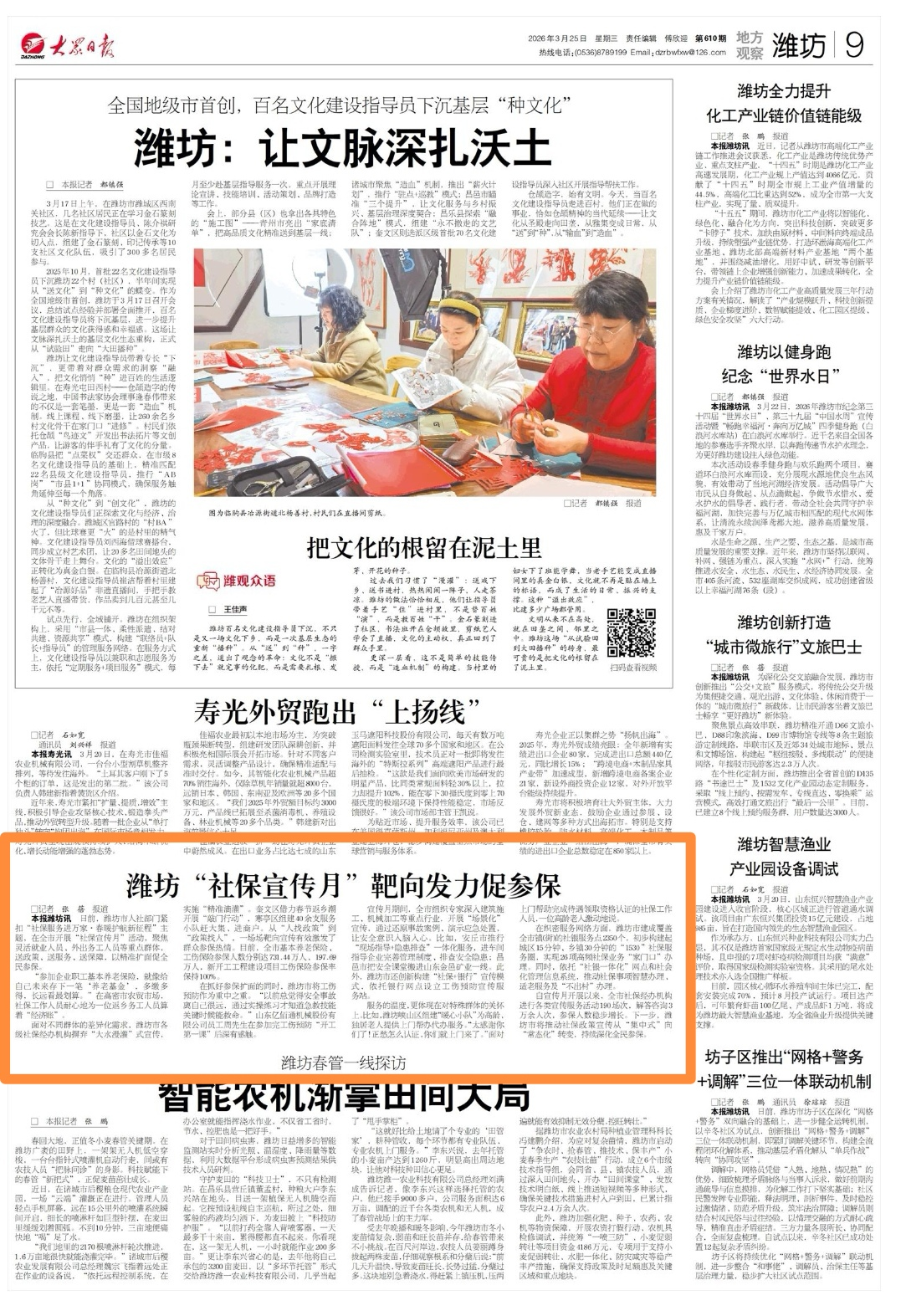 日前,潍坊市人社部门紧扣“社保服务进万家·春暖护航新征程”主题,在全市开展“社保宣传月”活动,聚焦灵活就业人员、外出务工人员等重点群体,送政策、送服务、送保障,以精准扩面促全民参保。