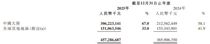 分区域来看,2025年,小米集团来自中国大陆的收入为3062.23亿元,同比增长44%,占总收入的67%;来自全球其他地区的收入为1510.64亿元,同比减少1.5%,占总收入的33%。