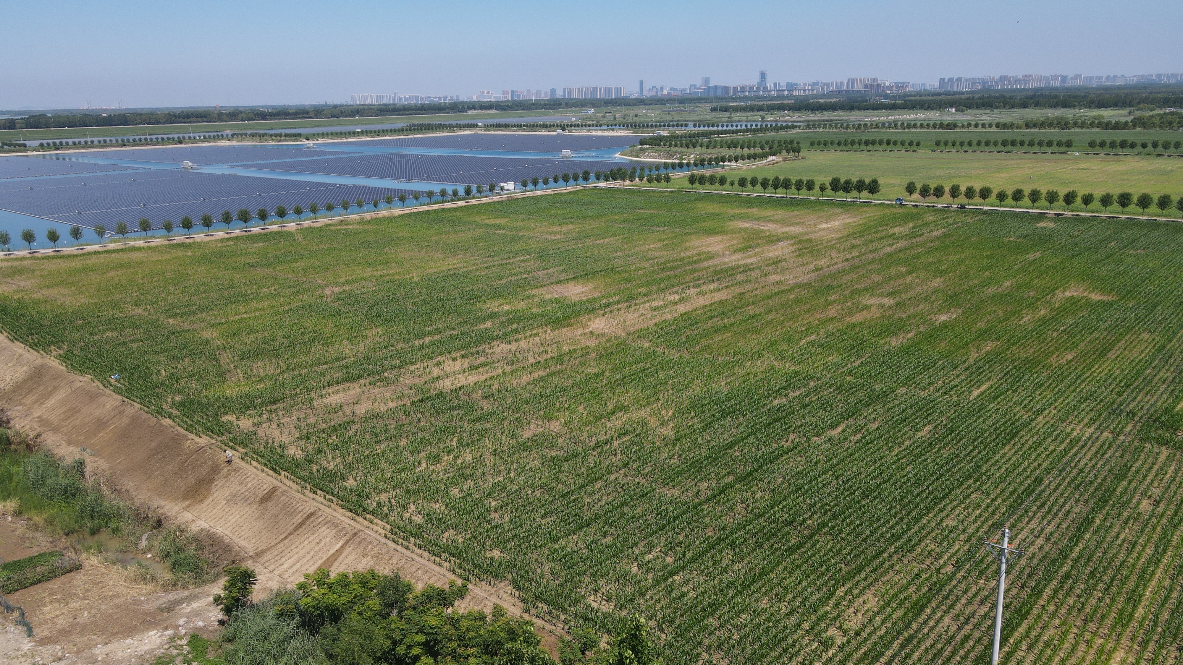 在济宁任城区二十里铺街道,千余亩塌陷地如今已是田成方、路成网、旱能浇、涝能排的高产良田。而在太白湖新区南阳湖农场,积水较深的塌陷区则采用“边采边治+挖深垫浅”,配以光伏板,实现了土地的水上发电、水中养鱼。