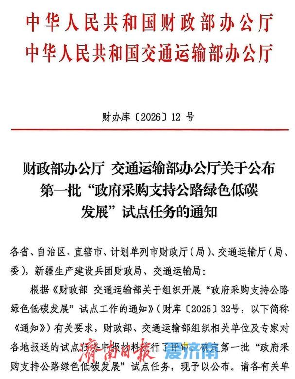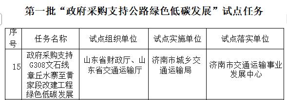 近日,财政部、交通运输部联合公布了第一批“政府采购支持公路绿色低碳发展”试点任务,济南市G308文石线章丘水寨至黄家段改建工程成功入选,系山东省两个入选项目之一。这标志着我市在以政府采购引领公路绿色低碳转型、服务“四港三区”联动发展上迈出关键一步。