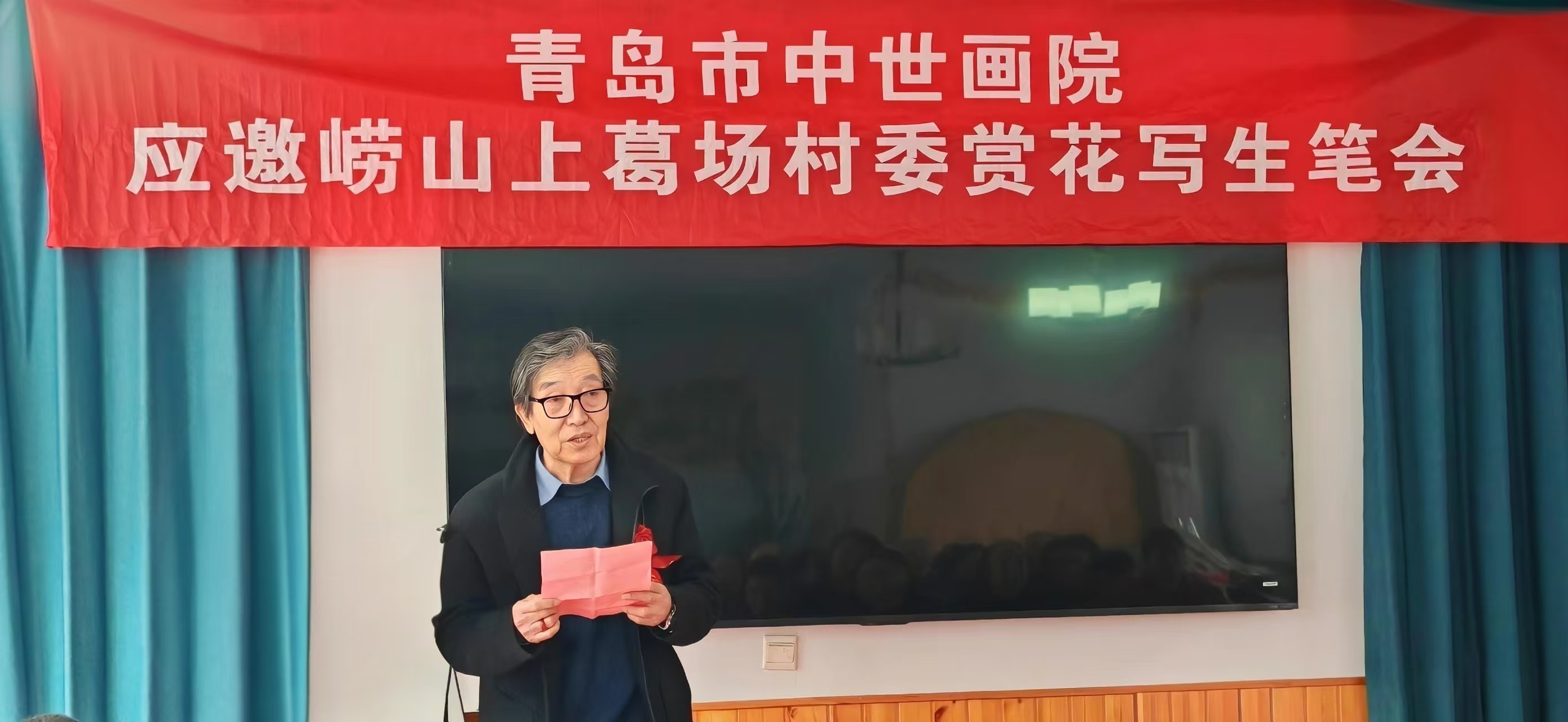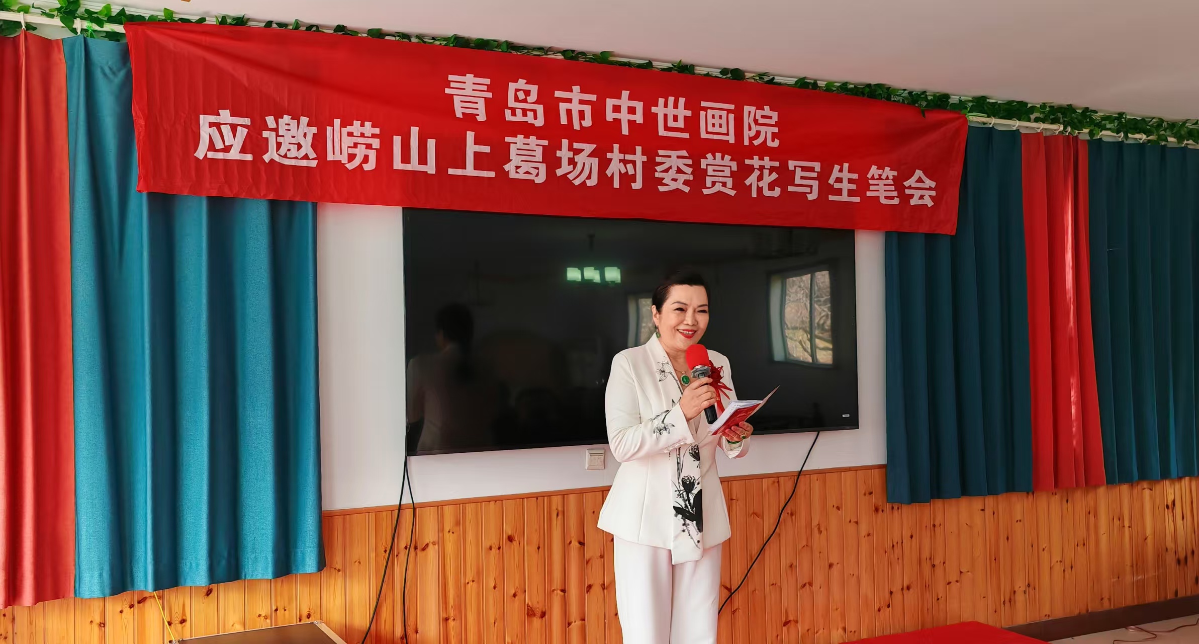 忽闻一夜春风吹,漫山樱桃花盛开。3月23日,青岛市中世书画艺术研究院应崂山区上葛场村有关人士邀请,周世平院长率中世画院各位艺术家们来到知名崂山大红樱桃生产地——上葛场村,举办了一次别开生面的赏花写生笔会。在主持人青岛市鉴宝专家、青岛市军创书画院副院长李昕红“春有百花秋有月,夏有凉风冬有雪,人生难得常相聚,共度人间好时节”的开场白里,活动拉开了序幕。