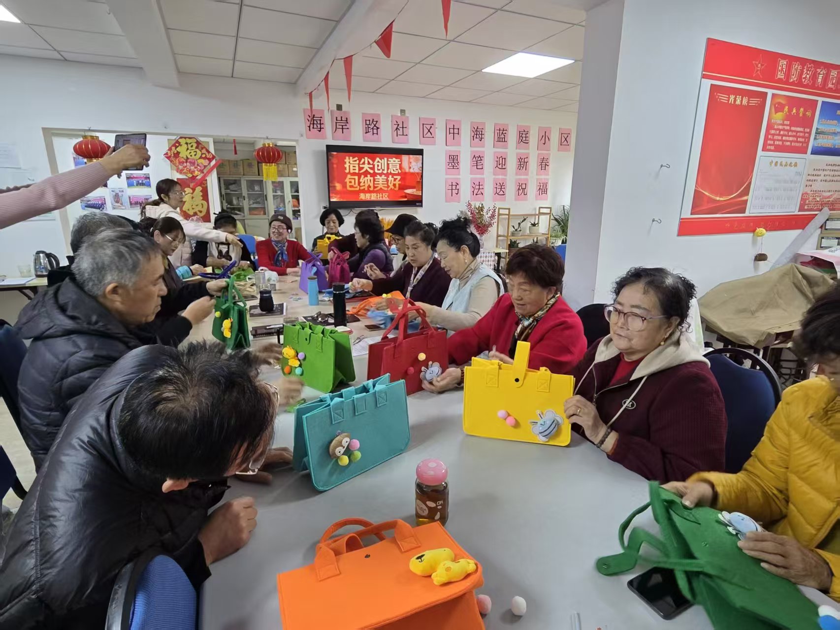 【文化进万家】市北区兴隆路街道海岸路社区开展“指尖创意·包纳美好”手工包制作活动