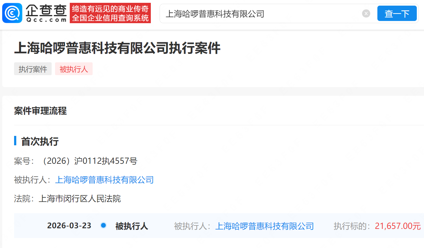 企查查APP显示,近日,哈啰出行关联的上海哈啰普惠科技有限公司新增一则被执行人信息,执行标的2.16万余元,执行法院为上海市闵行区人民法院。