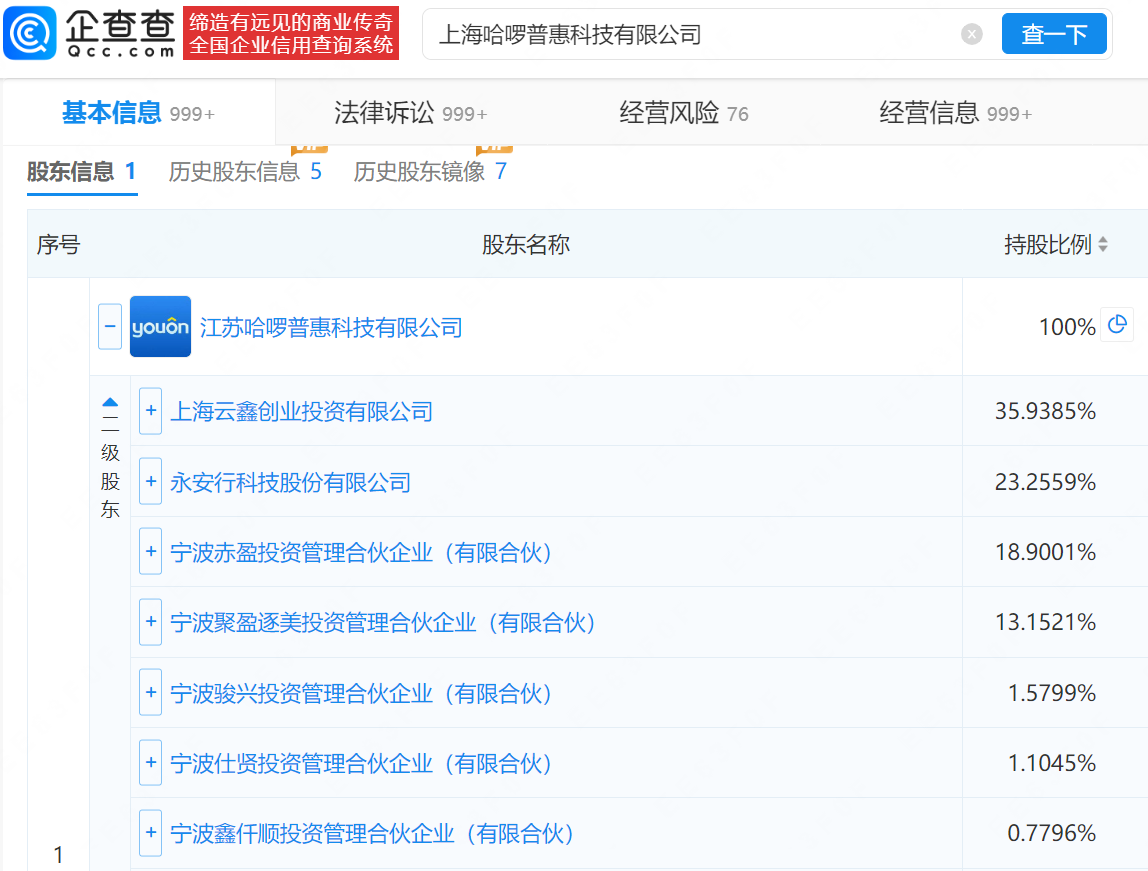 该公司成立于2016年3月,法定代表人吴晓龙,注册资本44亿元,经营范围包含共享自行车服务、小微型客车租赁经营服务、网络预约出租汽车经营服务等,由江苏哈啰普惠科技有限公司全资持股,上市公司永安行为间接持股股东。