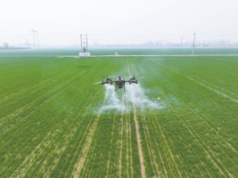 在邹平市黛溪街道的麦田上空,多架无人机正按照预设航线来回穿梭,精准喷药;地面上,施肥机同步作业,撒下均匀的肥料。这是当地推行的 “无人机喷药+机械化施肥” 同步作业模式。这种“空地协同”的方式,大幅提升了春管效率,让原本繁重的田间管理变得轻松高效,为夏粮稳产丰收赢得了主动。