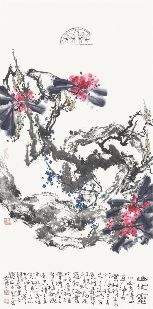 作为山东花鸟画领域的代表性艺术家,沈光伟深耕传统笔墨却不拘泥于古法,深得刚健风骨之精髓,同时将儒释道文化意蕴融入笔墨之间,形成了“苍劲中见灵秀,豪放中含精谨”的独特艺术风格。其作品题材丰富,傲雪寒梅尽显铮铮风骨,高山杜鹃饱含盎然生机,雅致小品藏着生活温情,以书入画、色墨相宜,既传承了传统写意花鸟的文脉根脉,又赋予笔墨鲜活的当代生命力,每一幅作品都透着对生活的热爱与对生命的礼赞。