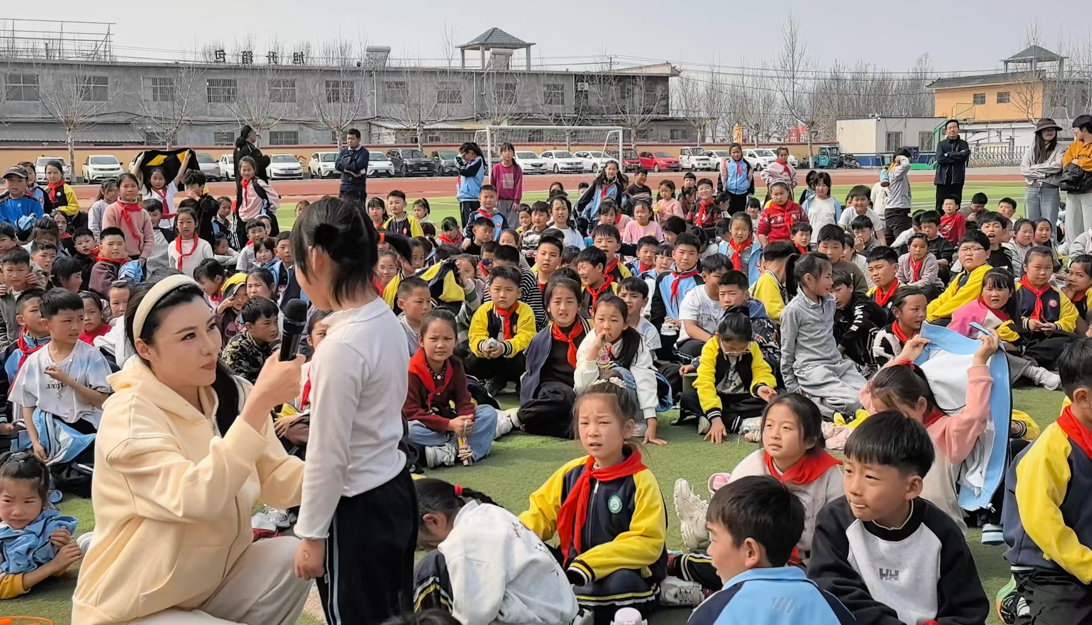 3月23日下午,在位于泗水县高峪镇的丑村小学操场上,全校师生围坐在一起,期待着《与你同行》的精彩上演。不多时,妆容精致的演员们走上舞台,用轻盈的舞步、诙谐的对白,和精彩的剧情,向台下的小观众们献上了一台精彩的演出。演出过程中,分为“预防信息泄露”和“预防校园霸凌”两个篇章先后上演,还有演员在演出间隙走到学生们中间,通过有趣的互动将演出内容巧妙地结合起来,不仅让孩子们更好地沉浸在演出中,还将安全知识传递到了学生们中间。