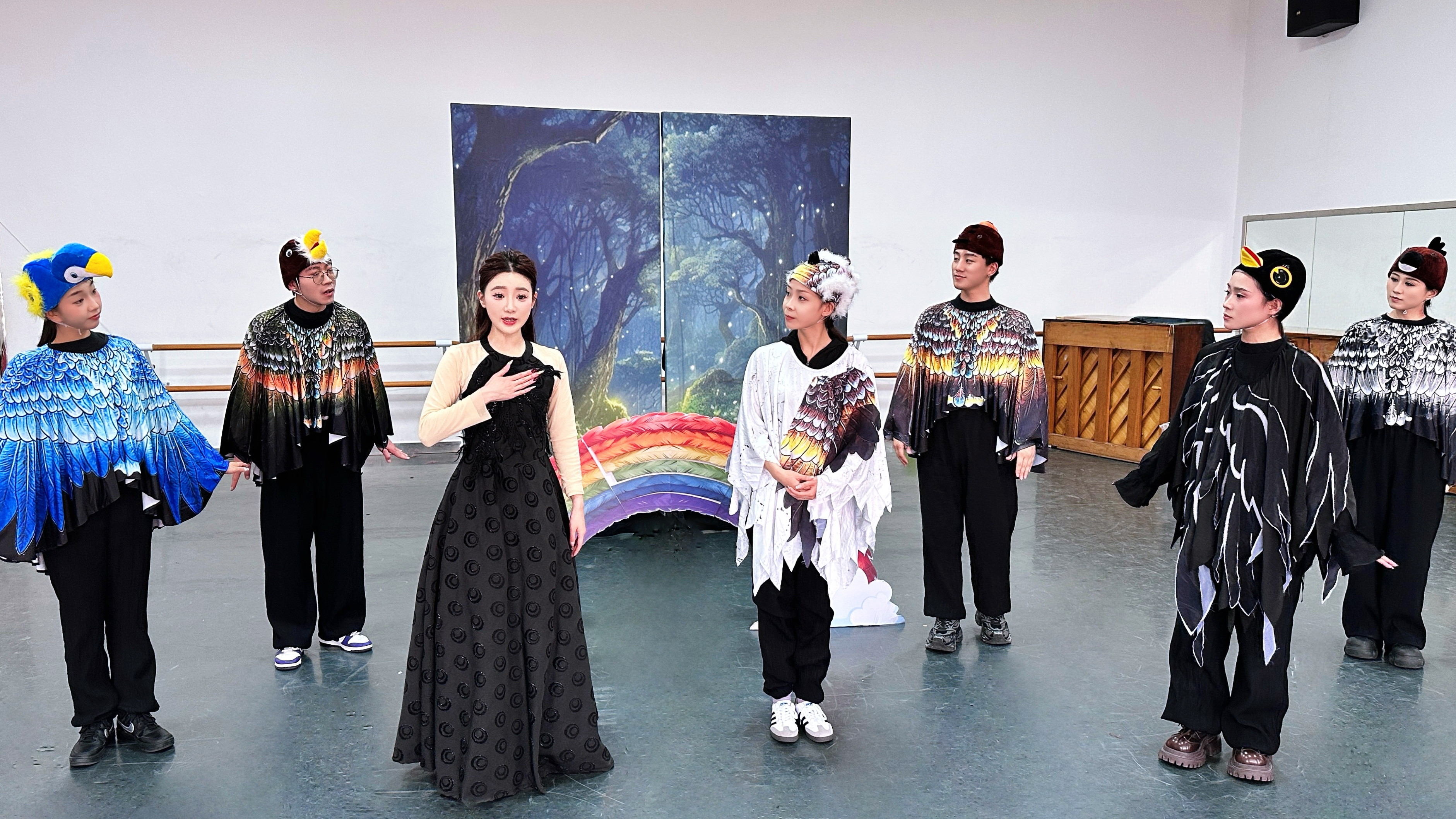 该剧导演陈劭介绍说,由艺术剧院精心打磨排演的儿童剧《与你同行》,以校园生活为背景,剧中以“神秘班会”拉开序幕,在林老师的带领下,同学们共同开启趣味安全挑战。剧目第一幕通过VR反诈游戏场景,生动呈现AI换脸冒充老师的诈骗手段,引导学生识破骗局、冷静应对,掌握实用防诈技巧;第二幕以魔法森林小动物的寓言故事,直观展现校园欺凌与言语暴力的危害,让孩子们在共情中理解尊重、友善与包容的重要意义。