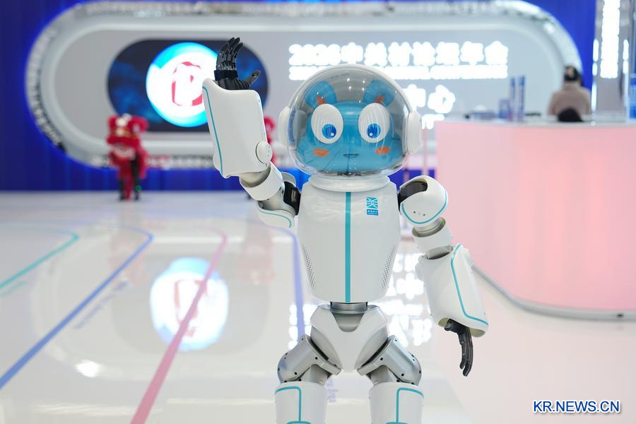 로봇이24일 중관춘포럼 연례회의 뉴스센터에서 관람객을 향해 손을 흔들고 있다. (사진/신화통신)