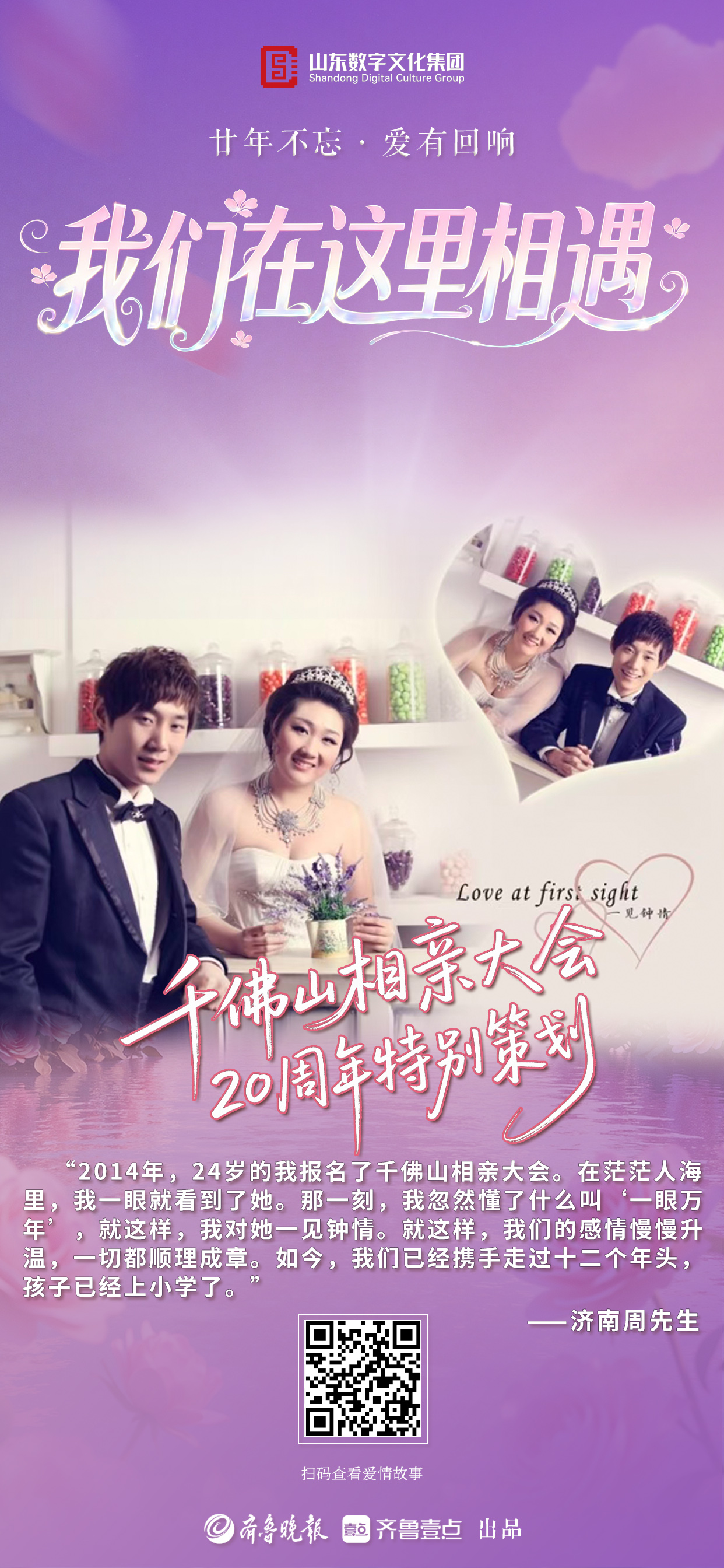 从2006到2026,二十年岁月如歌,二十年只为相遇。值此千佛山相亲大会二十周年之际,齐鲁晚报·齐鲁壹点推出“廿年不忘·爱有回响”千佛山相亲大会二十周年特别策划,向通过相亲会结缘另一半组建幸福美满家庭的无数个有缘人发出诚挚邀请,在二十周年这个特别的日子里,一起分享我们在这里相遇的故事,共忆动心时刻,共叙相守温情。