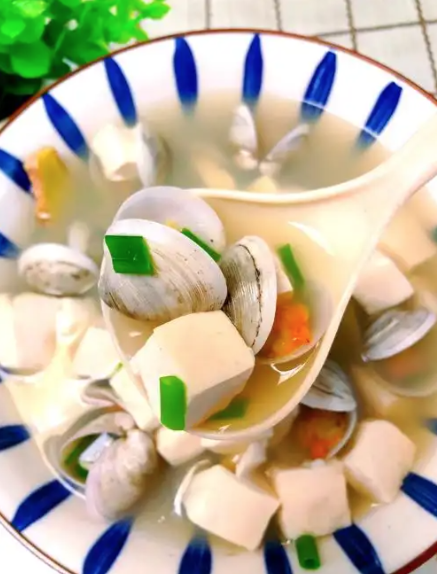 第三种,蛤蜊豆腐汤,鲜爽解腻,老少皆宜,是山东人家常餐桌上的暖心汤品。蛤蜊吐沙洗净,豆腐切成小块焯水去豆腥味;锅中加少许油,姜丝爆香后倒入适量清水,煮开后放入豆腐煮5分钟,再加入蛤蜊,中火煮3-4分钟至蛤蜊开口,最后加少许盐、撒上葱花和香菜,无需多余调料,鲜味儿直钻鼻腔。这道汤高蛋白、低脂肪,蛤蜊的鲜与豆腐的嫩完美融合,春日喝一碗,暖心又暖胃。