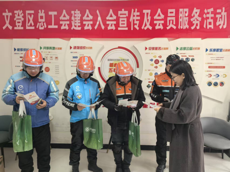 流动宣讲送上门。威海市文登区总工会走进招聘会现场及大型商超,设立“入会咨询服务站”,支起易拉宝,向职工群众发放宣传折页,并送上“入会礼包”,让政策宣传有温度、有实物。在共享职工之家、外卖站点及物流园区的休息区,工会工作人员利用外卖骑手、货车司机、网约车司机等新就业形态劳动者的休息间隙,主动上门讲解入会政策,指导扫码入会,实现服务“零距离”。