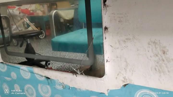 理发店内的玻璃镜子破损