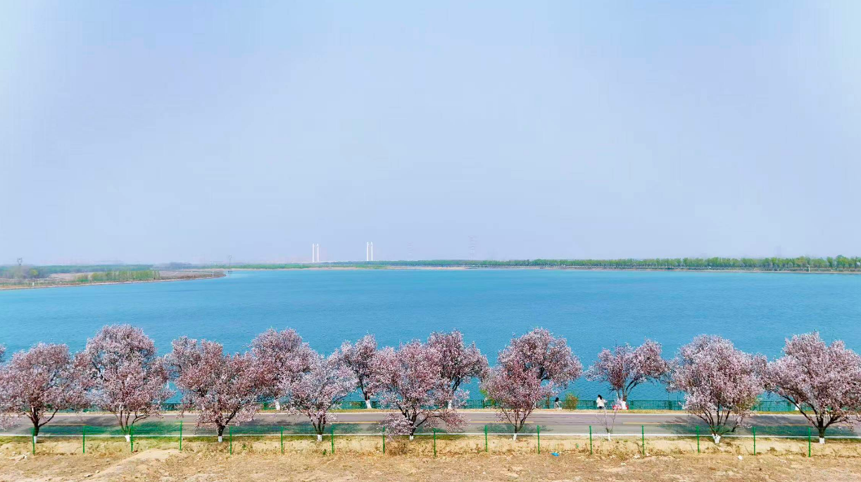 黄河岸畔,一排紫叶李繁花盛放,粉白相间的花团缀满枝头,如云似霞,在春风里轻摇,将沿黄绿道晕染成浪漫的花廊。游人漫步花下,身影融入这湖光花色之中,让春日的生机与人间烟火在此静静交汇。