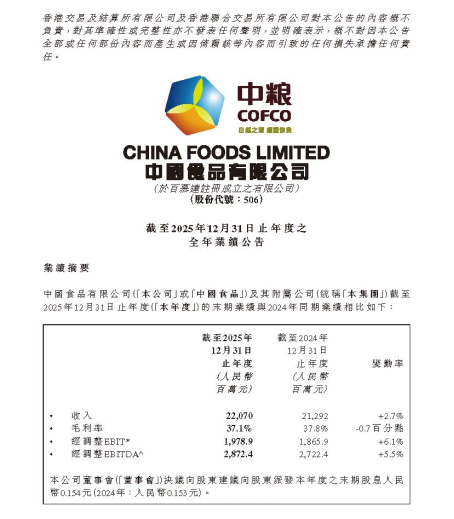 中国食品2025年财报:结构优化见成效,多点支撑开新局