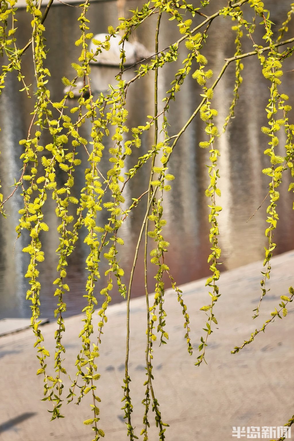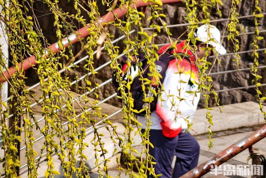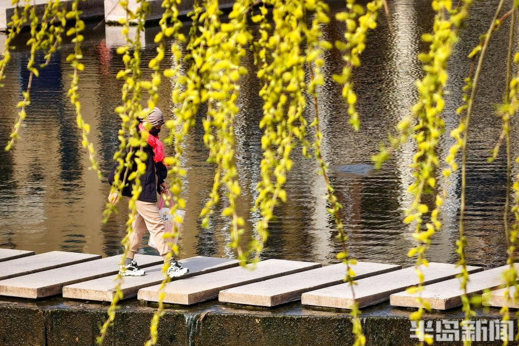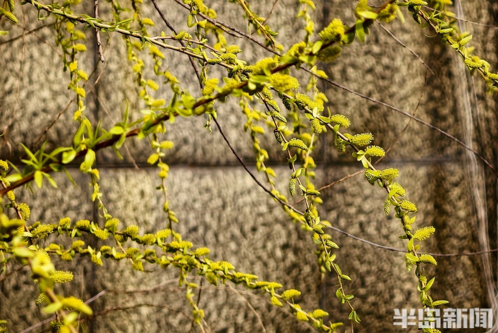 3月25日,青岛市李村河畔的柳树悄然换上新装。细长的柳枝上,嫩绿的叶片如碧玉般舒展开来,一串串鹅黄色的柳花缀满枝头,毛茸茸的,在春风中轻轻摇曳。游人漫步其间,抬头可见满树嫩绿,低头便是水中倒影,虚实相映,宛如一幅淡淡的春日画卷。(半岛全媒体记者吴璟)