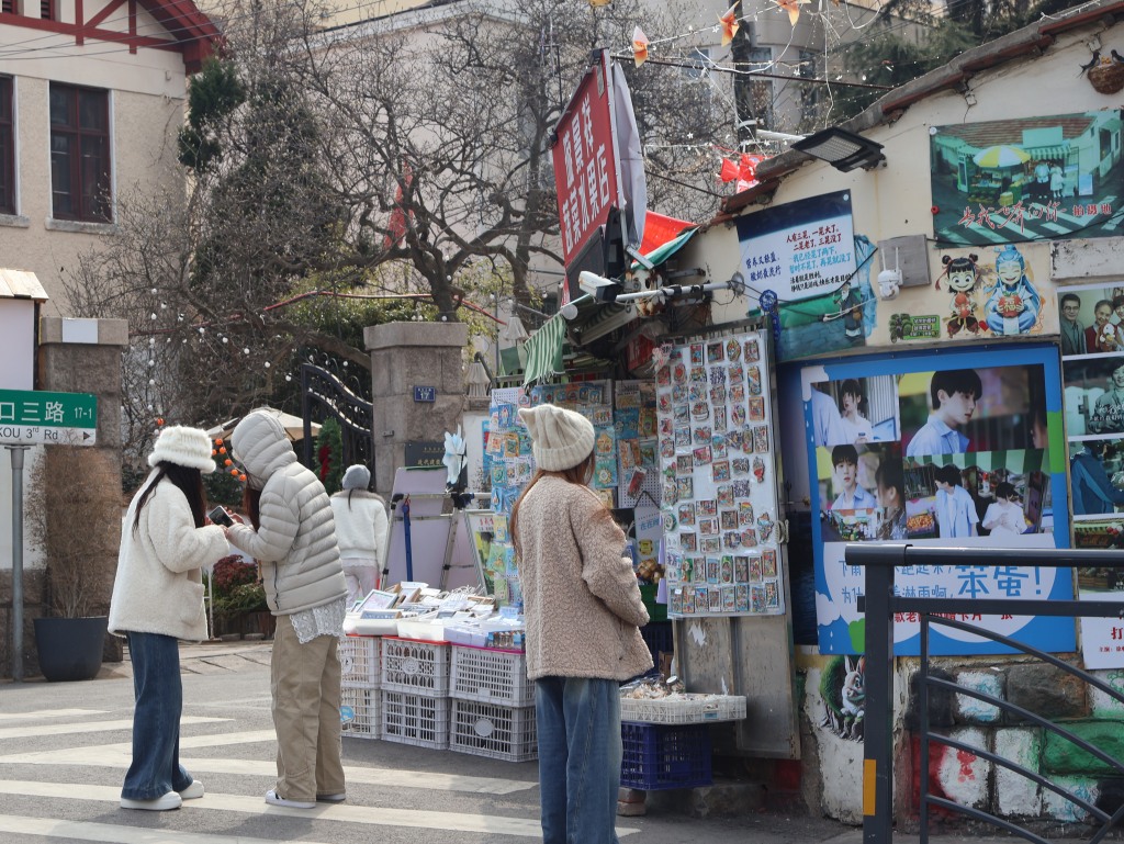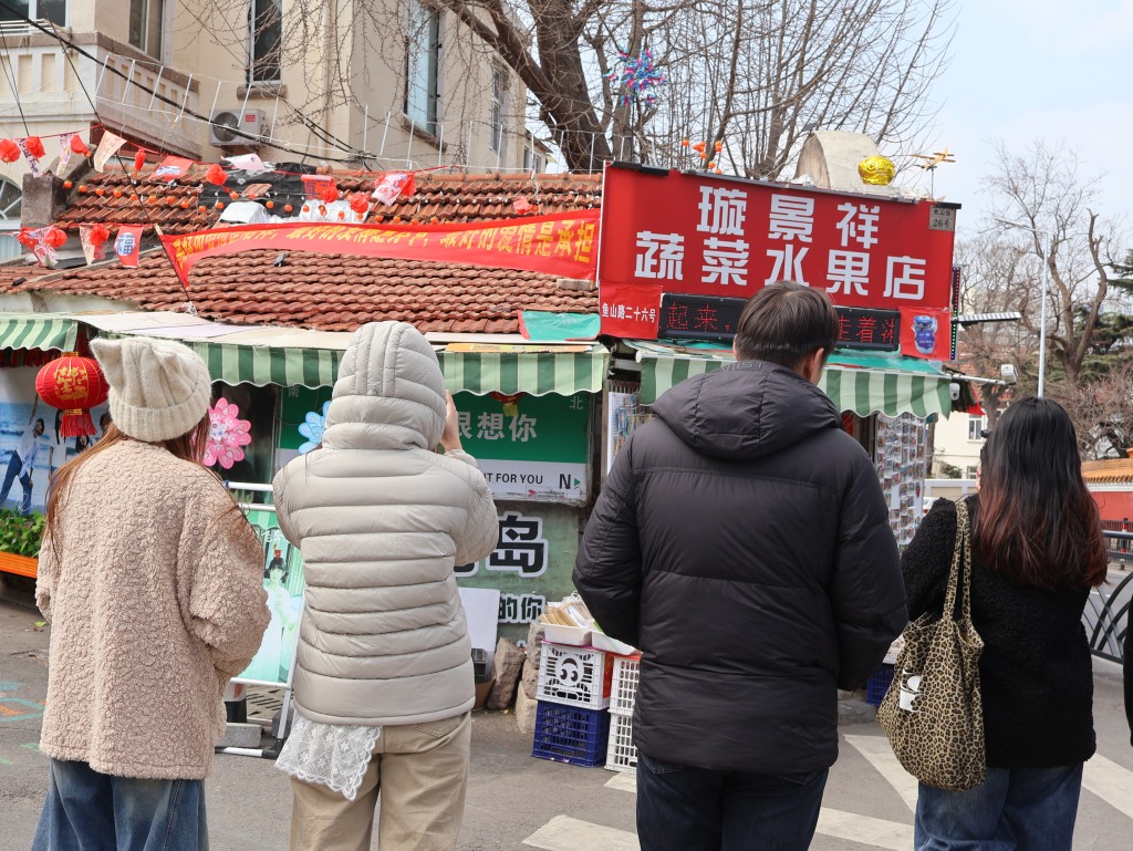 近日,在鱼山路26号璇景祥蔬菜水果店,店主孟祥军正收拾着货架。“为了方便游客打卡,别让他们跑空,今年春节我们从老家赶过来,大年初二就开门营业了。”谈及小店走红的原因,孟祥军笑着介绍,因《当我飞奔向你》《关于我妈的一切》等影视剧在此取景,社交平台网友的分享,这两年来,来店里打卡的游客络绎不绝。“大学路网红墙、漫画墙、小鱼山等景点就在周边,离着很近,游客经过店的时候,就会过来打个卡拍个照。”碰到游客问景点位置的情况,孟祥军就会热情地做介绍。