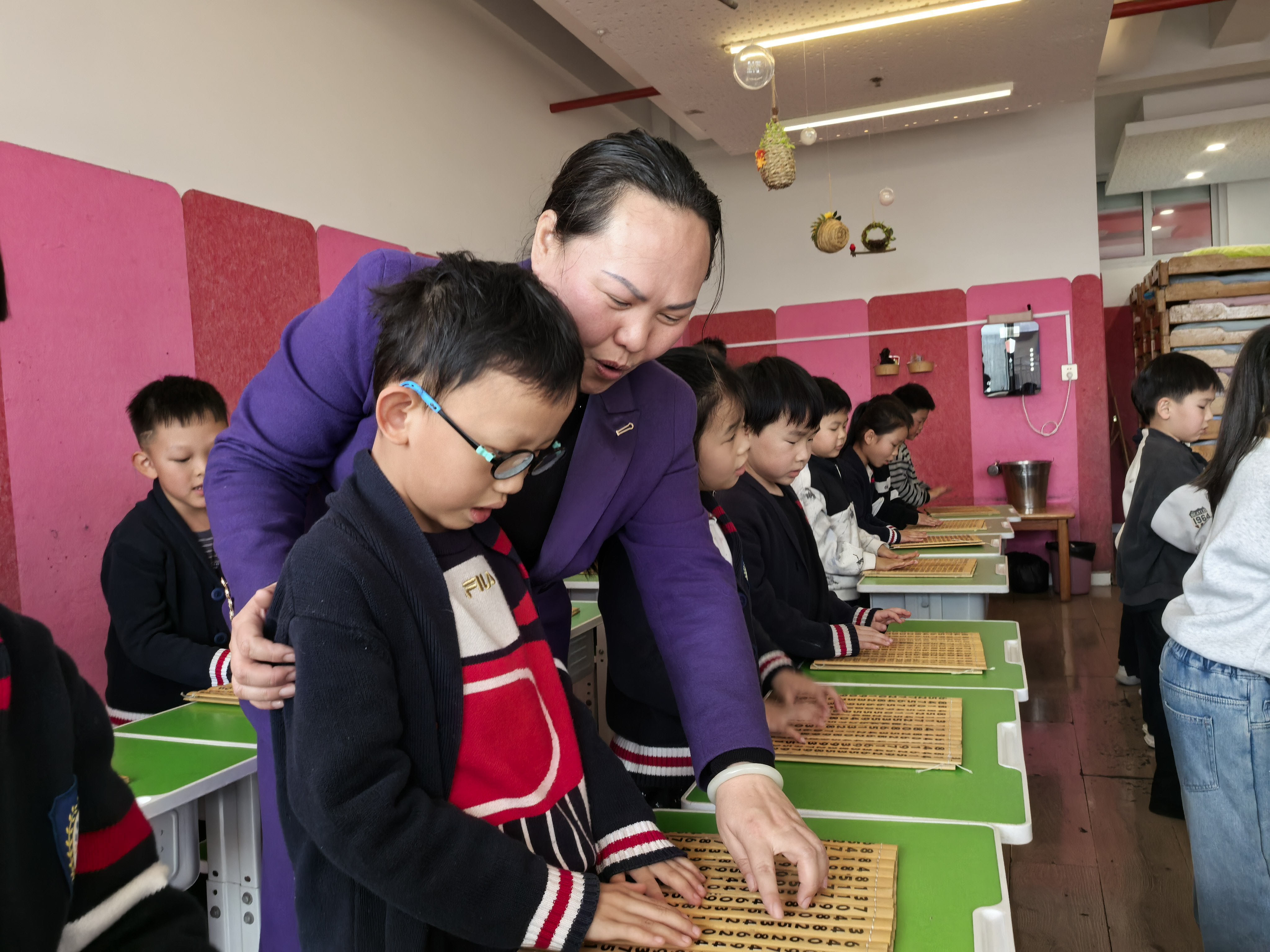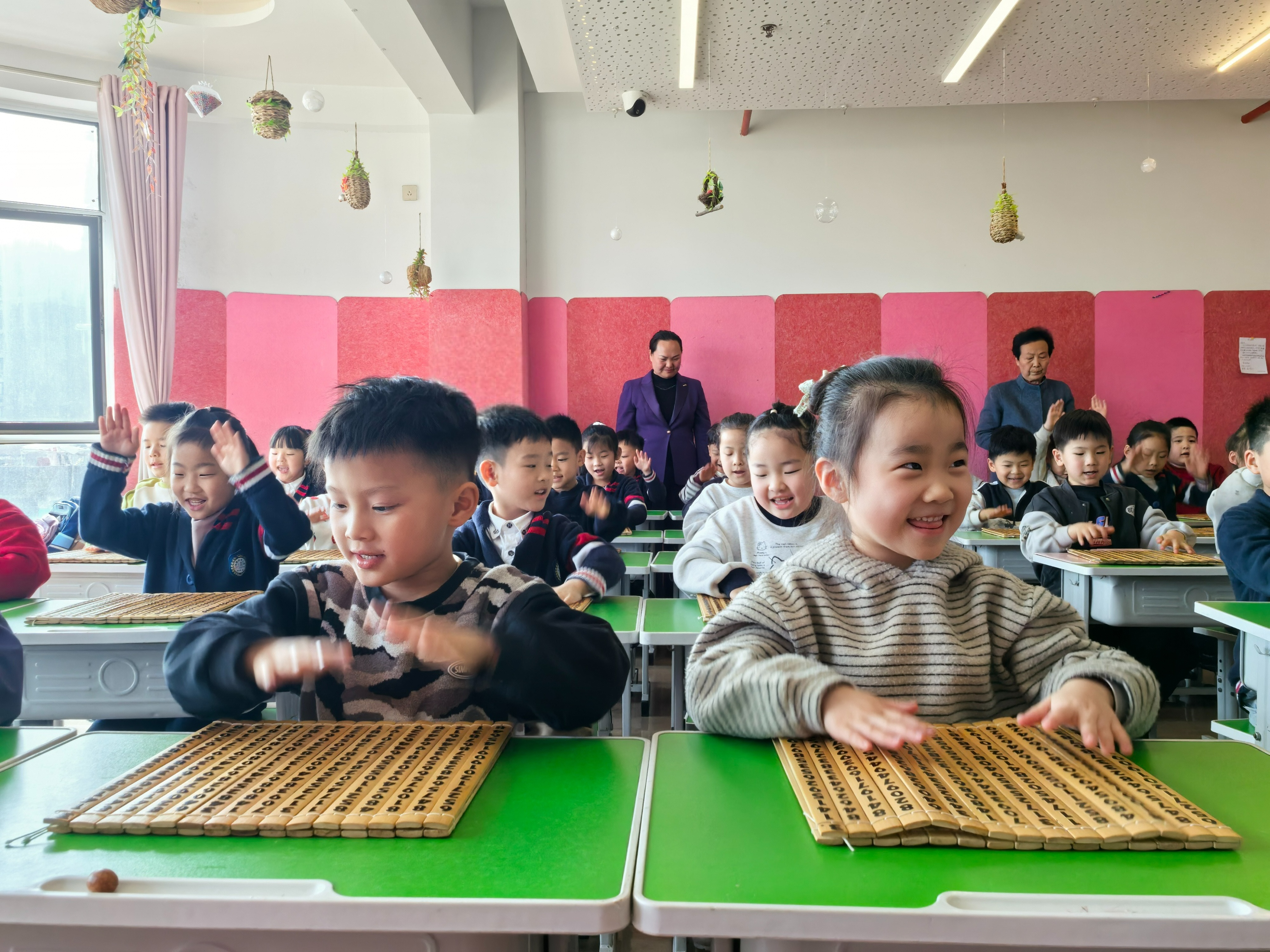 下午,活动走进金都华府幼儿园。针对幼儿的特点,工作人员用卡通化的语言讲解竹简知识,引导小朋友们用小手轻轻拍打、触摸竹简。“竹简软软的,字是凸起来的!”小朋友们围着竹简,你一言我一语,有的跟着工作人员小声跟读,有的伸出小手指,一遍又一遍地触碰数字,脸上洋溢着纯真的笑容。老师们表示,这种沉浸式体验,不仅能锻炼孩子们的手指灵活性,还能在他们心中种下热爱传统文化的种子,让传统文化启蒙变得生动有趣。