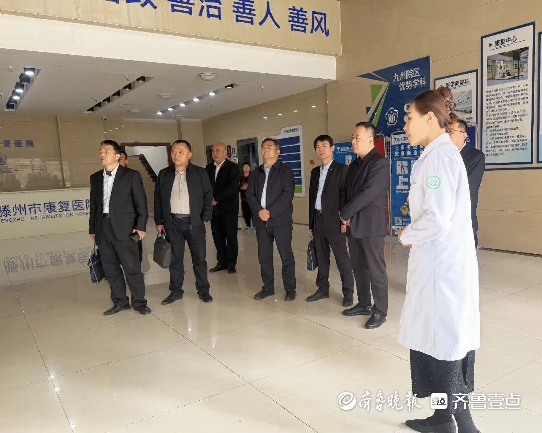 3月20日,聊城市东昌府区中医院党委副书记、院长徐少全一行到滕州市康复医院九州院区参观交流,该院领导和相关科室负责人陪同。