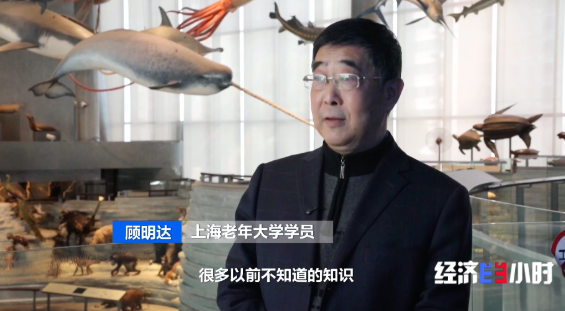 顾明达是上海老年大学的一名学员,新学期刚开始,他拼手速抢到了老年大学“热门课程”的名额。新课程开课,这群银发学员一早相约在上海自然博物馆集结。